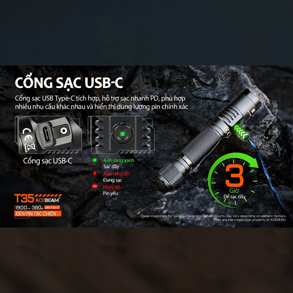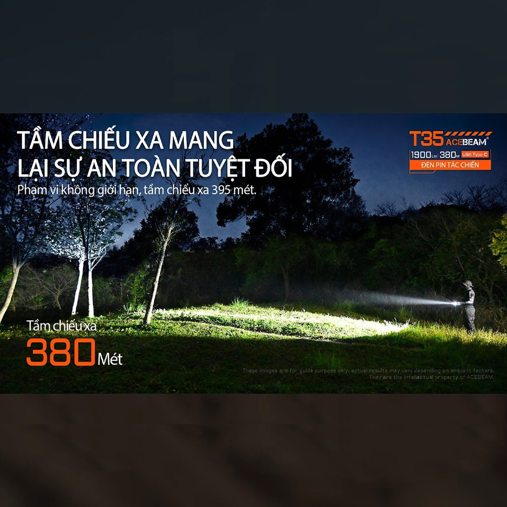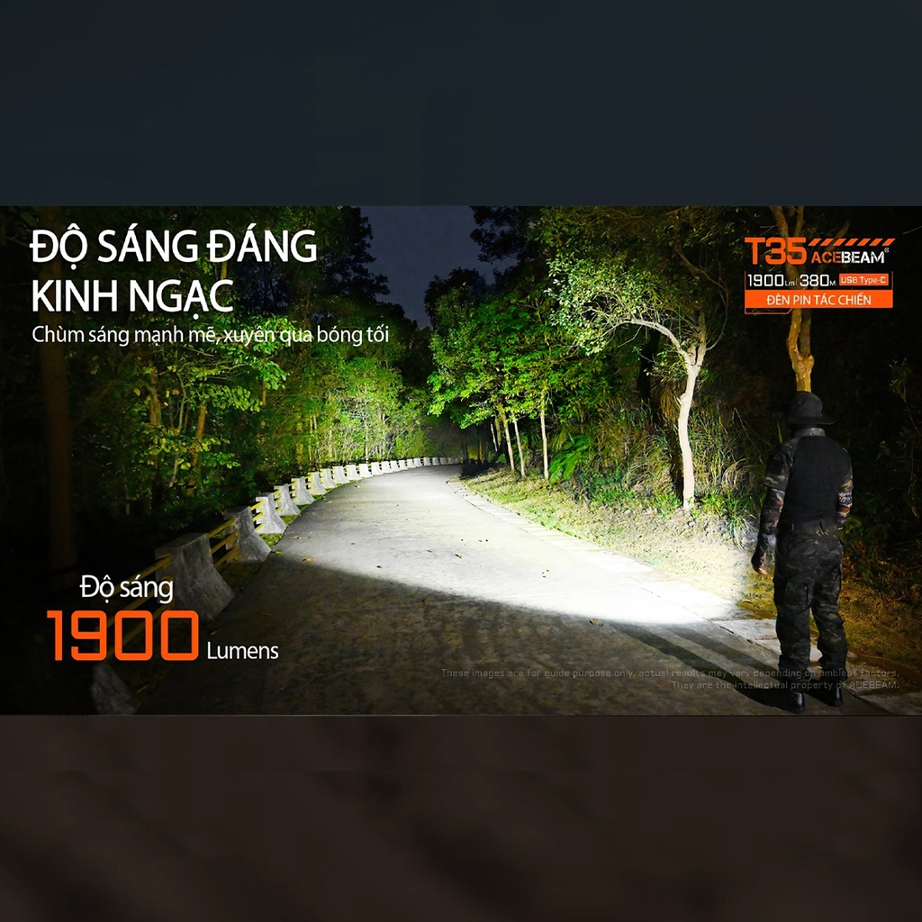 ACEBEAM T35 Đèn Pin Cắm Trại Sáng 1900 Lumens Chiếu Xa 380m Pin 18650 2600mAh Sạc USB C, hiện đang được bán chính hãng tại ProCamping. Giờ đây, bạn sẽ không cần phải lo lắng về những chuyến đi, hành trình sắp tới nữa đúng không nào. Hãy nhanh chóng sở hữu ngay cho mình sản phẩm tuyệt vời, giá trị này ngay nhé.