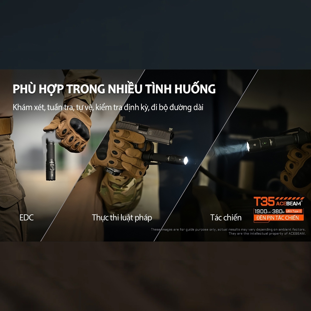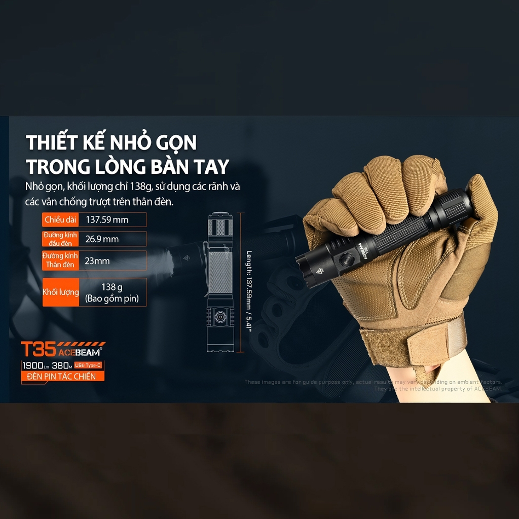 Thiết kế nhỏ gọn, vừa tay nhưng sở hữu nguồn sáng mạnh mẽ, T35 phù hợp cho nhiệm vụ chiến thuật, tuần tra, các công việc chuyên dụng cũng như sử dụng trong đời sống hàng ngày như đi biển, dã ngoại, cắm trại và nhiều hoạt động ngoài trời khác.