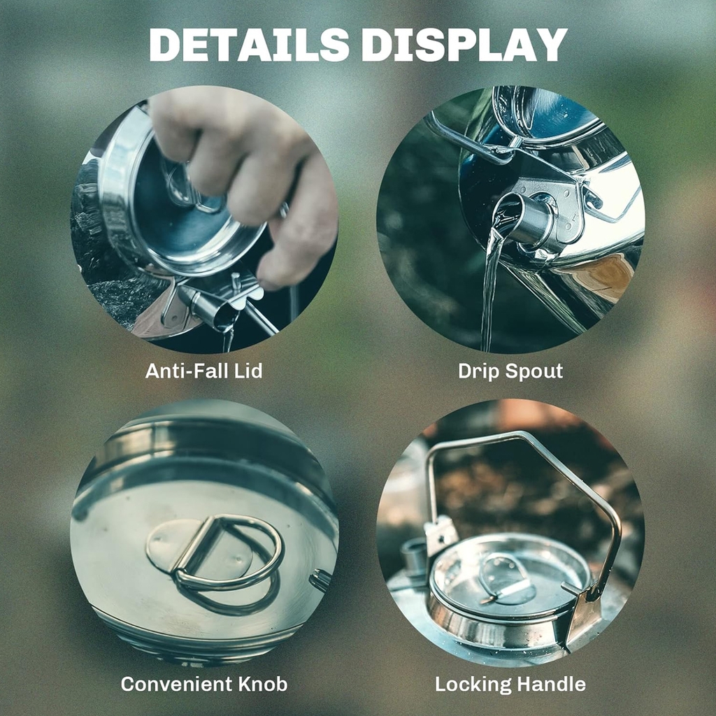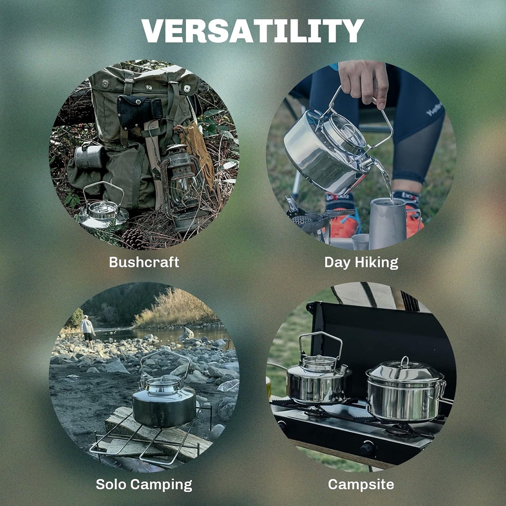 Dung tích 1 lít phù hợp cho các bữa ăn cà phê, trà và cắm trại. Hoạt động tốt cho nước khử trùng để uống an toàn trong cả những tình huống khẩn cấp và khó khăn. Cấu trúc bằng thép không gỉ an toàn để sử dụng trên lửa trại, bếp trại và lò sưởi. Luôn thận trọng khi di chuyển và sử dụng các dụng cụ nấu ăn nóng.