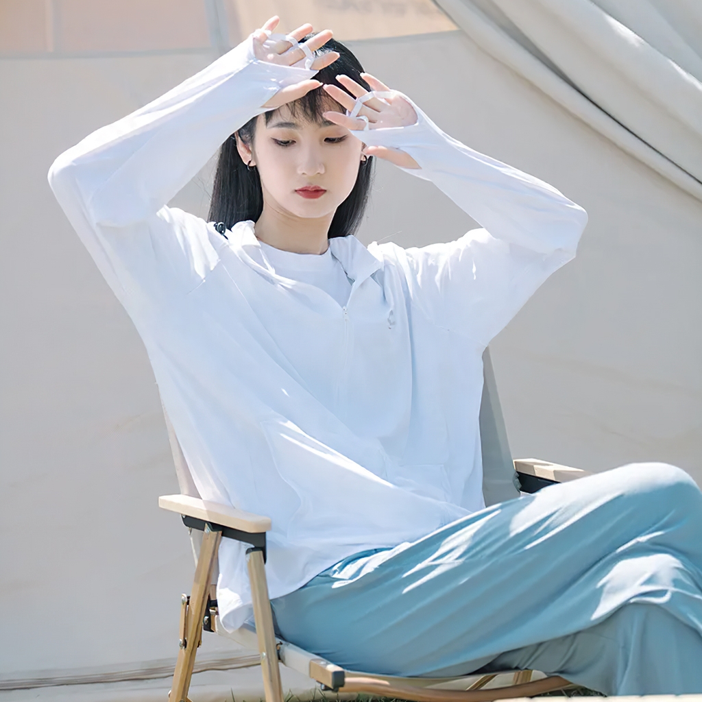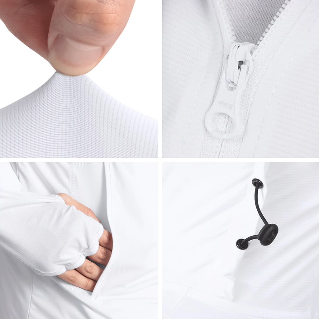 Áo dệt kim chống nắng sử dụng chất liệu Cotton và Spandex đề cao sự thoải mái, thiết kế che phủ mu bàn tay và mặt, nhẹ nhàng, thoáng mát và khó bị phai màu theo thời gian.