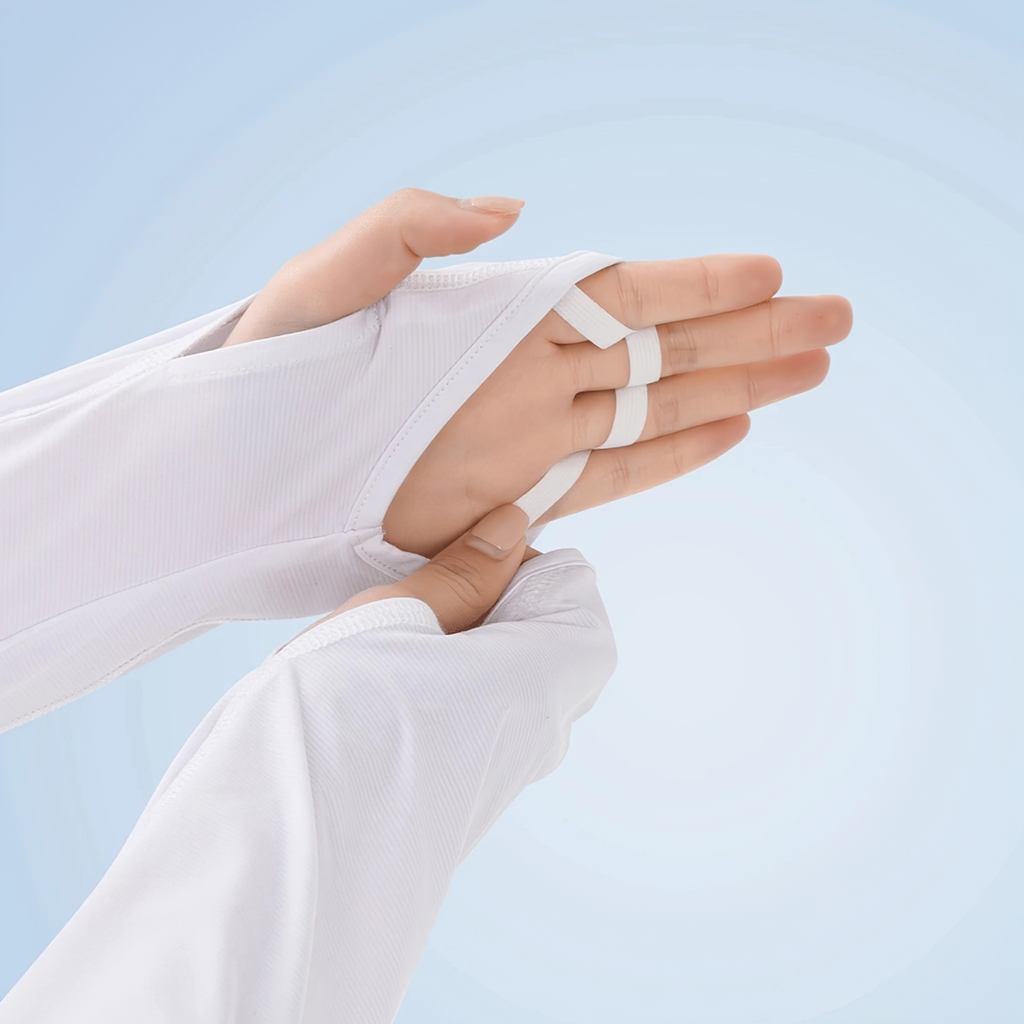 Thiết kế lỗ đan vào ngón tay giúp cố định tay áo không bị xê dịch, co dãn linh hoạt cũng như dễ dàng đeo và tháo ra.