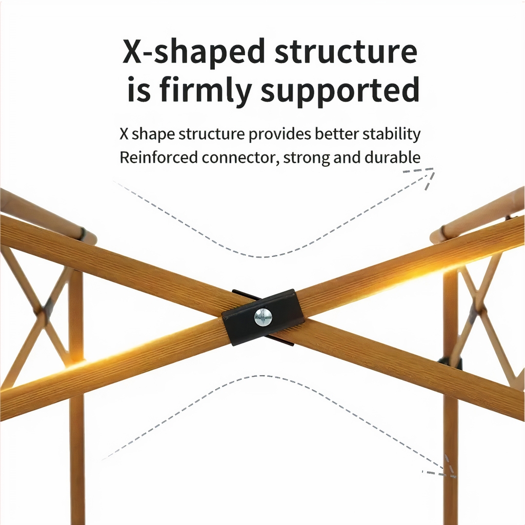Thiết kế khung bàn chữ X hỗ trợ ổn định hơn, tải trọng cao tới 30kg. Các đầu nối gia cố chắc chắn, bền bỉ.