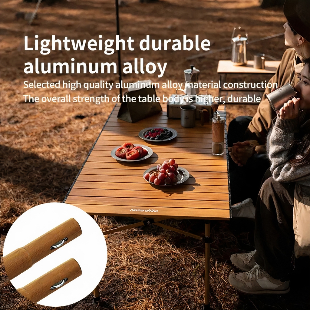 Bàn nhôm cắm trại gấp gọn NatureHike CNH22JU038 chất liệu hợp kim nhôm vân gỗ nhẹ, bền và vô cùng sang trọng. Thiết kế khung bàn chữ X hỗ trợ ổn định hơn, tải trọng cao tới 30kg. Khung bàn có thể gấp lại chỉ bằng 1 cú nhấp chuột, mặt bàn thiết kế cuộn trứng cuộn lại dễ dàng, túi đựng đi kèm có quai xách thuận tiện cho việc di chuyển và lưu trữ thích hợp các hoạt động ngoài trời như cắm trại, dã ngoại, ăn uống trong sân vườn.
