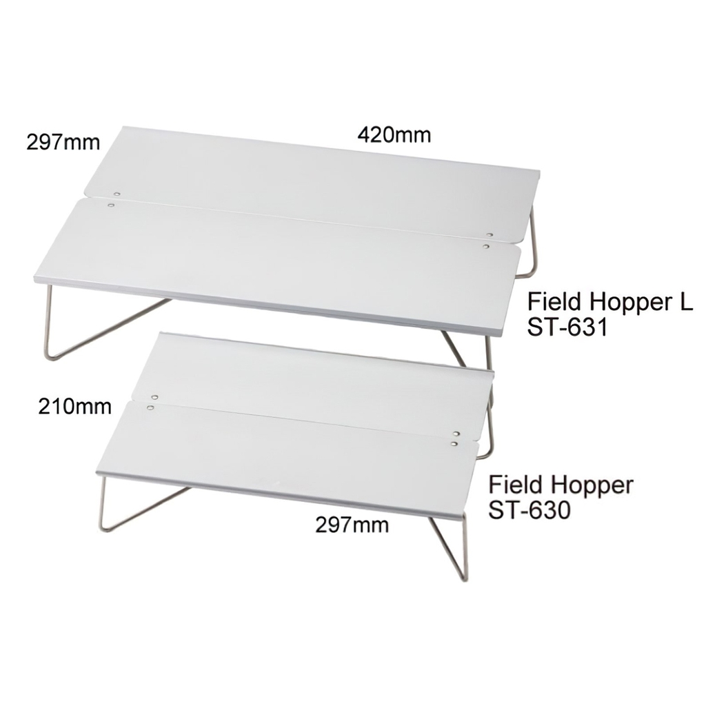 Bàn Xếp Gọn Soto Field Hopper ST-630 được nhập khẩu trực tiếp tại Nhật Bản. Bàn nhỏ Field Hopper giúp nấu ăn dễ dàng hơn trong những chuyến đi dài và cắm trại. Nó có thể được mở bằng tay và cung cấp một bề mặt ổn định và bằng phẳng cho bếp, bát đĩa và nồi. Trong lều ngăn các vật nóng hoặc có cạnh sắc làm hỏng nền lều. Vì nó cực kỳ nhẹ và chiếm rất ít không gian nên nó cũng rất phù hợp để mang theo sau lưng.