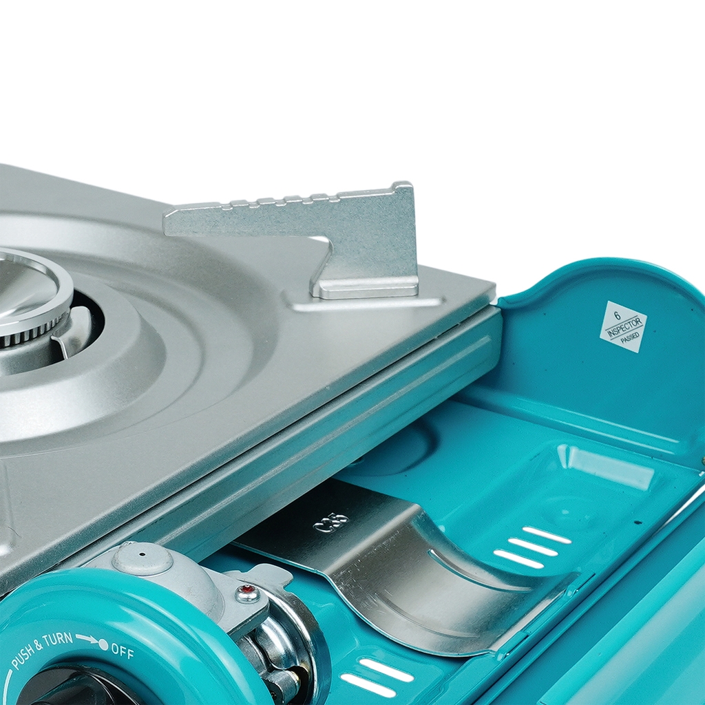 Bếp ga mini MS-N3600R sở hữu màu xanh lục lam thời thượng và nổi bật. Kiềng bếp được làm từ hợp kim nhôm nhẹ cao cấp, dễ dàng vệ sinh và thân thiện với môi trường. Bếp ga mini inox được trang bị núm điều khiển an toàn chuyển động kép "ẤN và XOAY", đảm bảo an toàn tuyệt đối, đặc biệt khi gia đình có trẻ nhỏ.