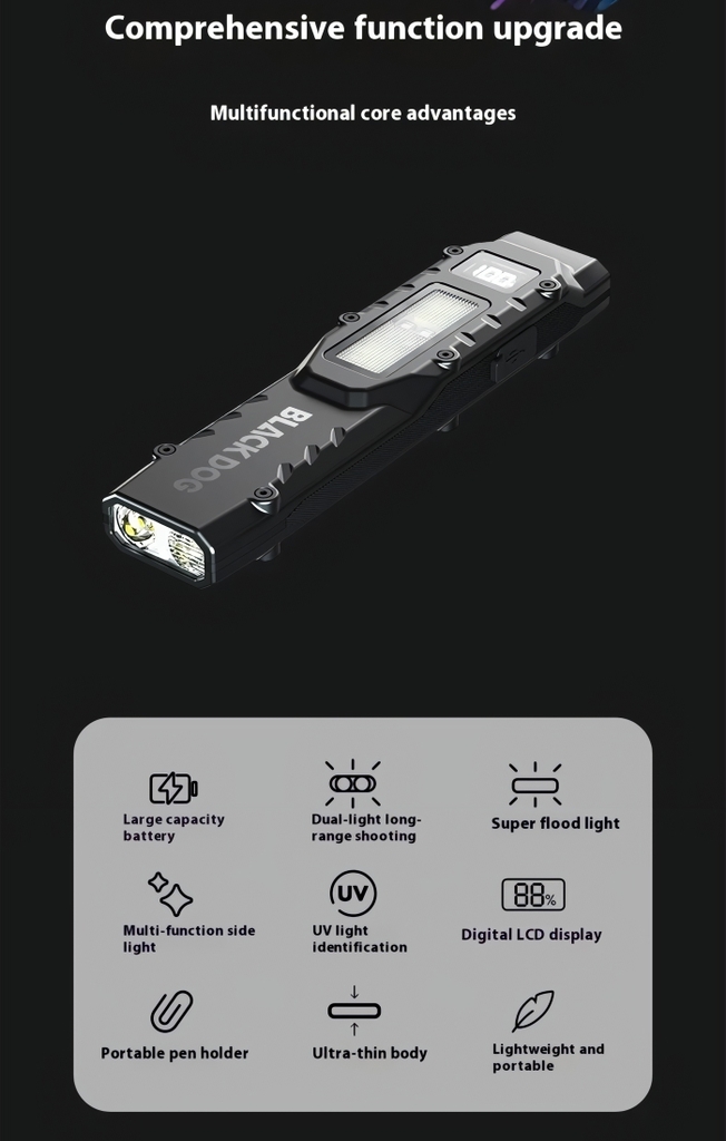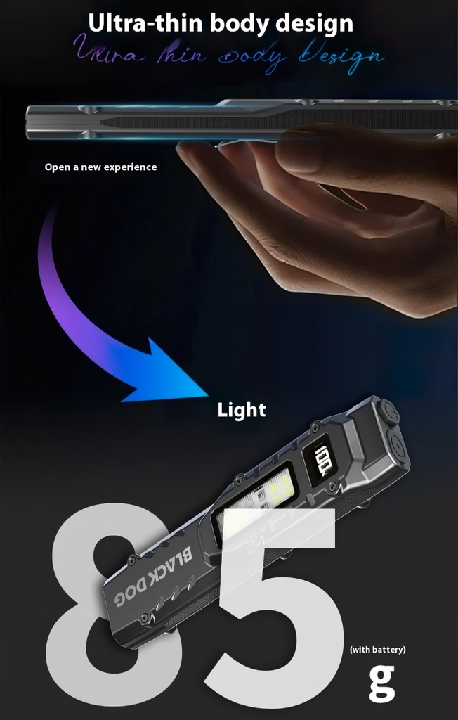 Đèn pin EDC bỏ túi đa năng BLACKDOG Yeren R1 CBD2550ZM019 tạo ấn tượng mạnh nhờ thiết kế gọn gàng cùng loạt tính năng đáng giá, trong khi mức giá lại rất dễ tiếp cận. Điểm nhấn nằm ở kiểu dáng mỏng hiện đại, màn hình LCD hiển thị pin, đèn hông hai màu tích hợp UV và cụm công tắc đuôi kép cho phép điều khiển hai kênh chiếu sáng độc lập. Phần thân đèn gần như được hoàn thiện hoàn toàn từ thép không gỉ, mang lại cảm giác cầm nắm chắc tay và bền bỉ so với phân khúc giá.