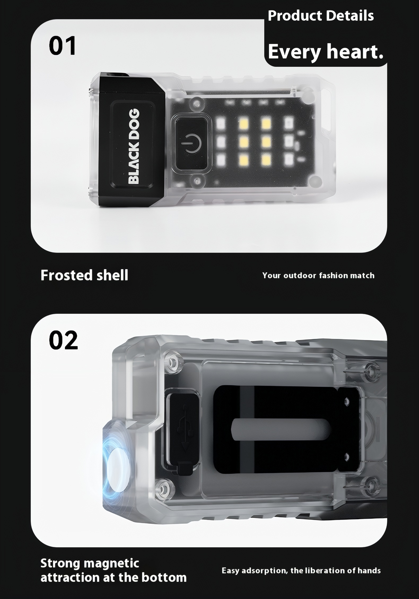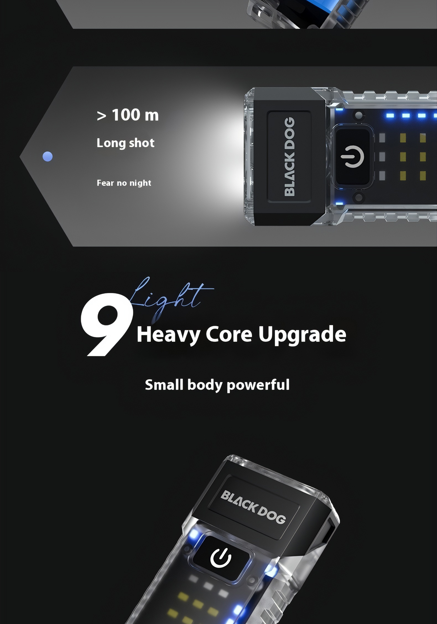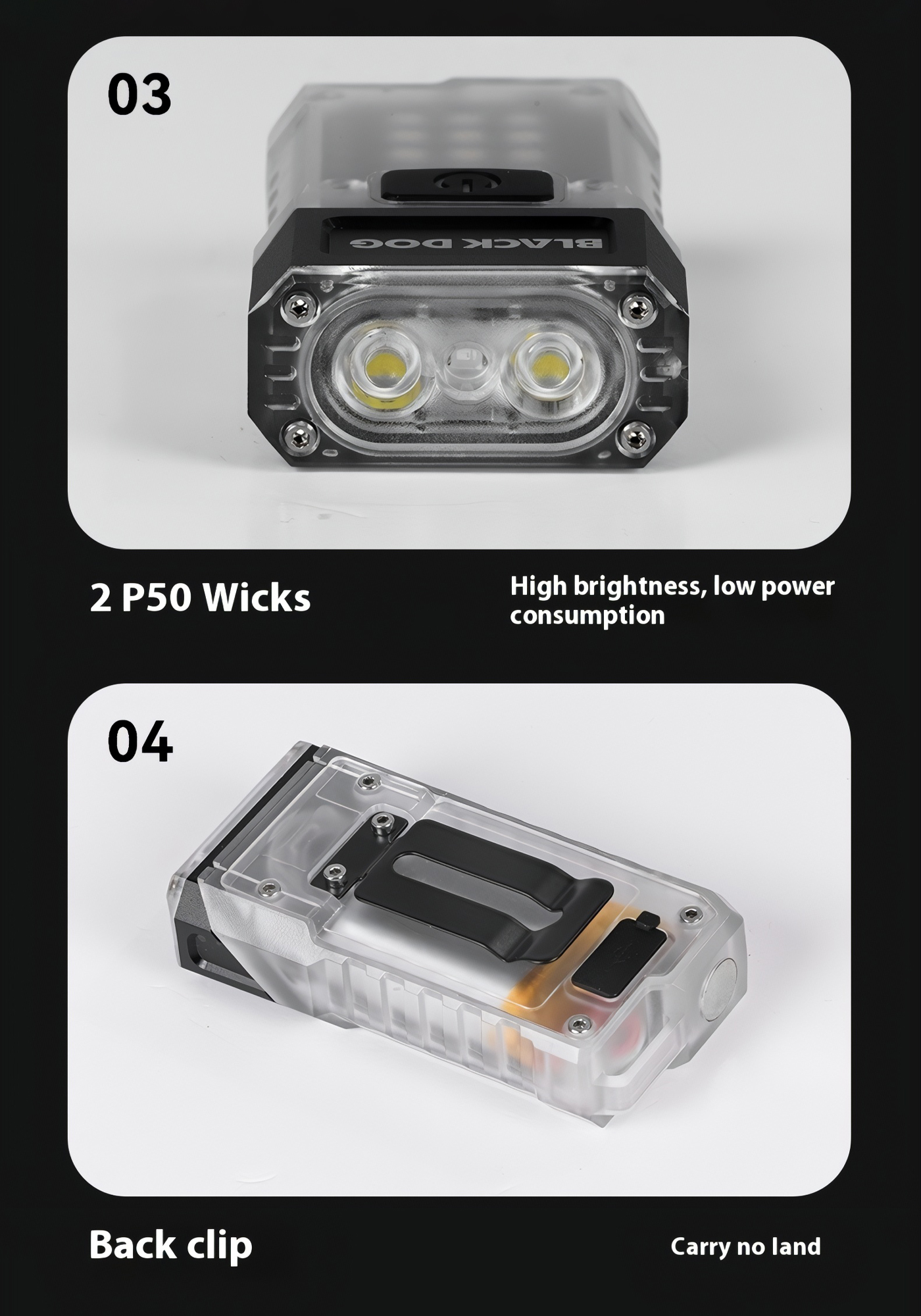 🔦 Đầu đèn xoay 90° cho nhiều tư thế sử dụng, dễ cố định khi thao tác hoặc gắn lên balo, túi áo.