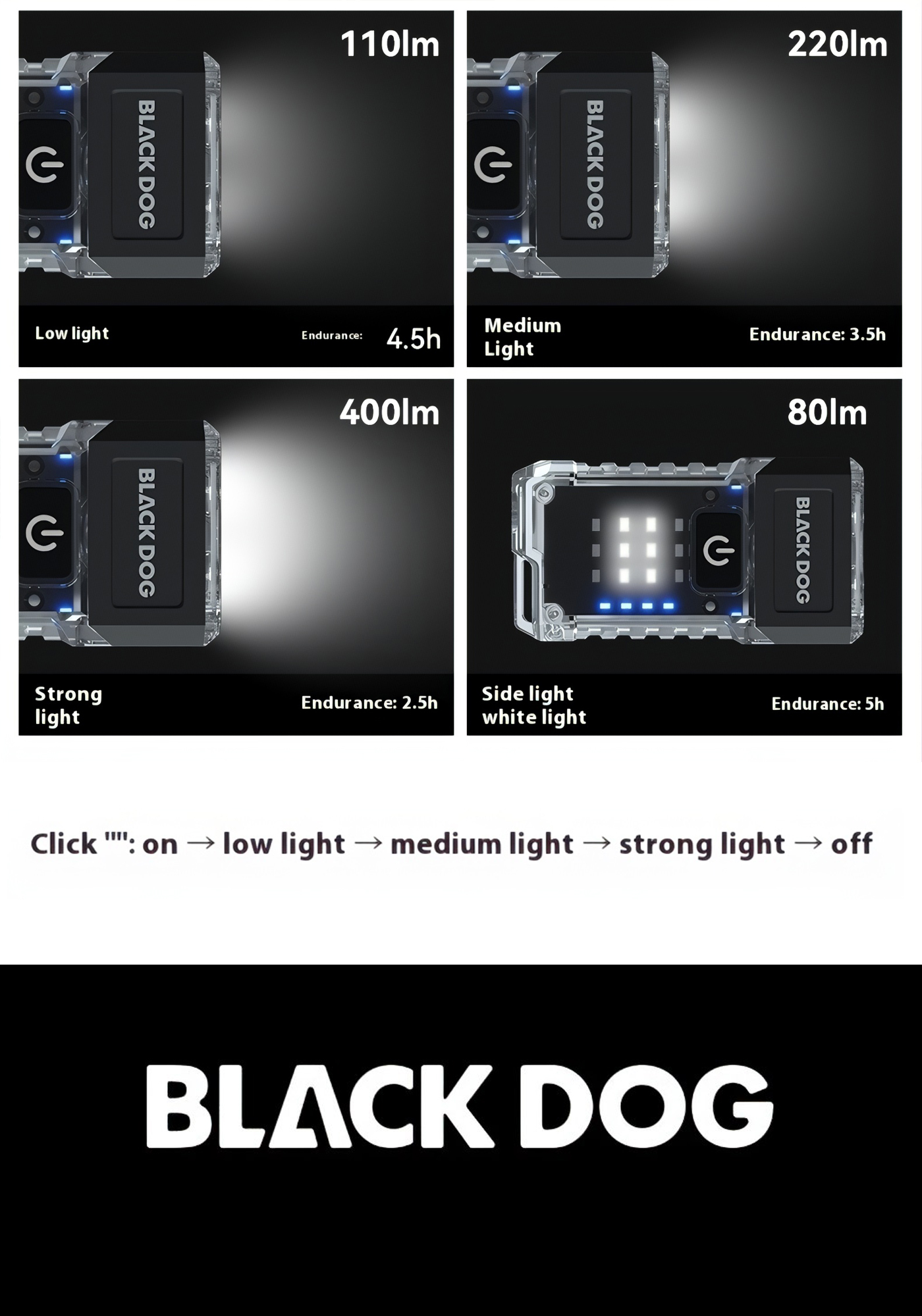 💡 Độ sáng tùy chỉnh từ 80–400 lumen, đáp ứng cả nhu cầu chiếu gần lẫn chiếu xa.
