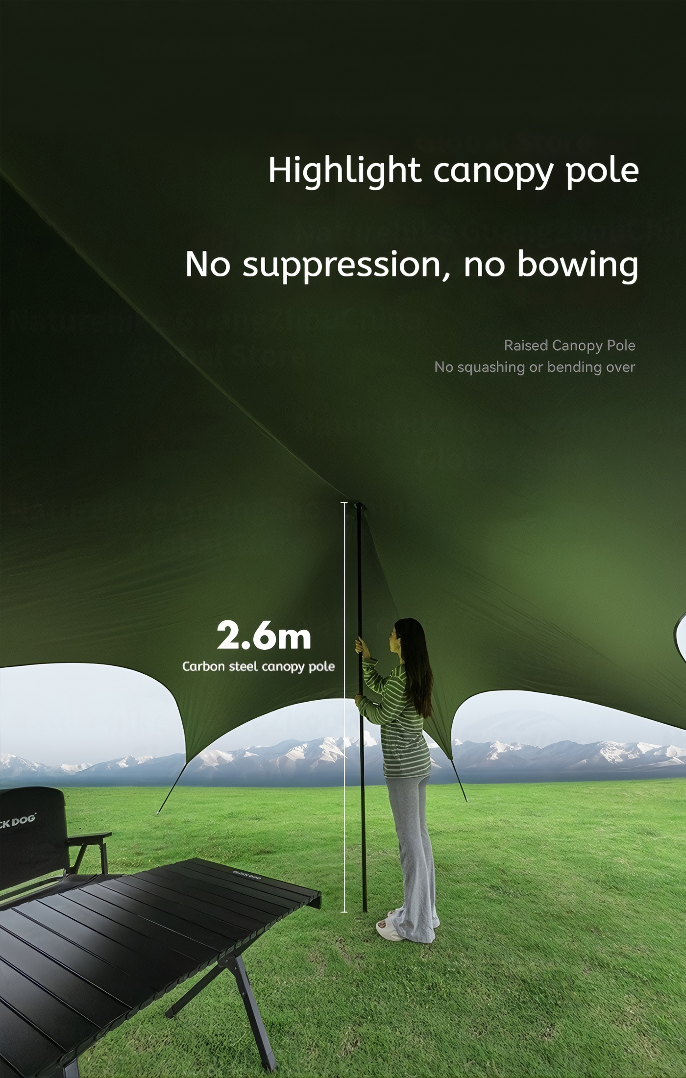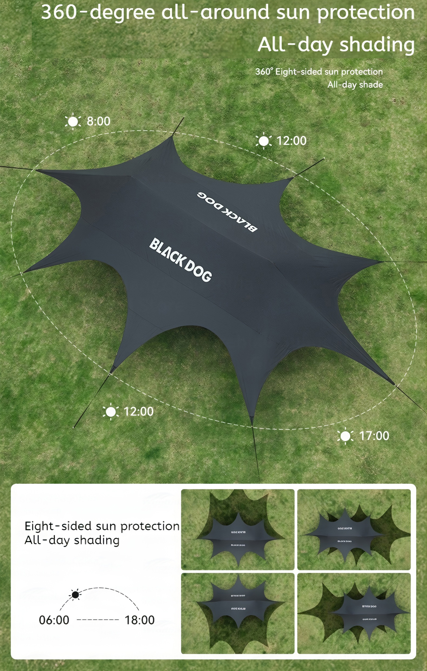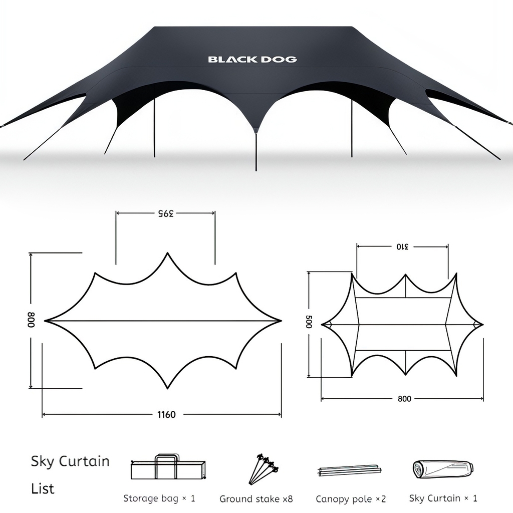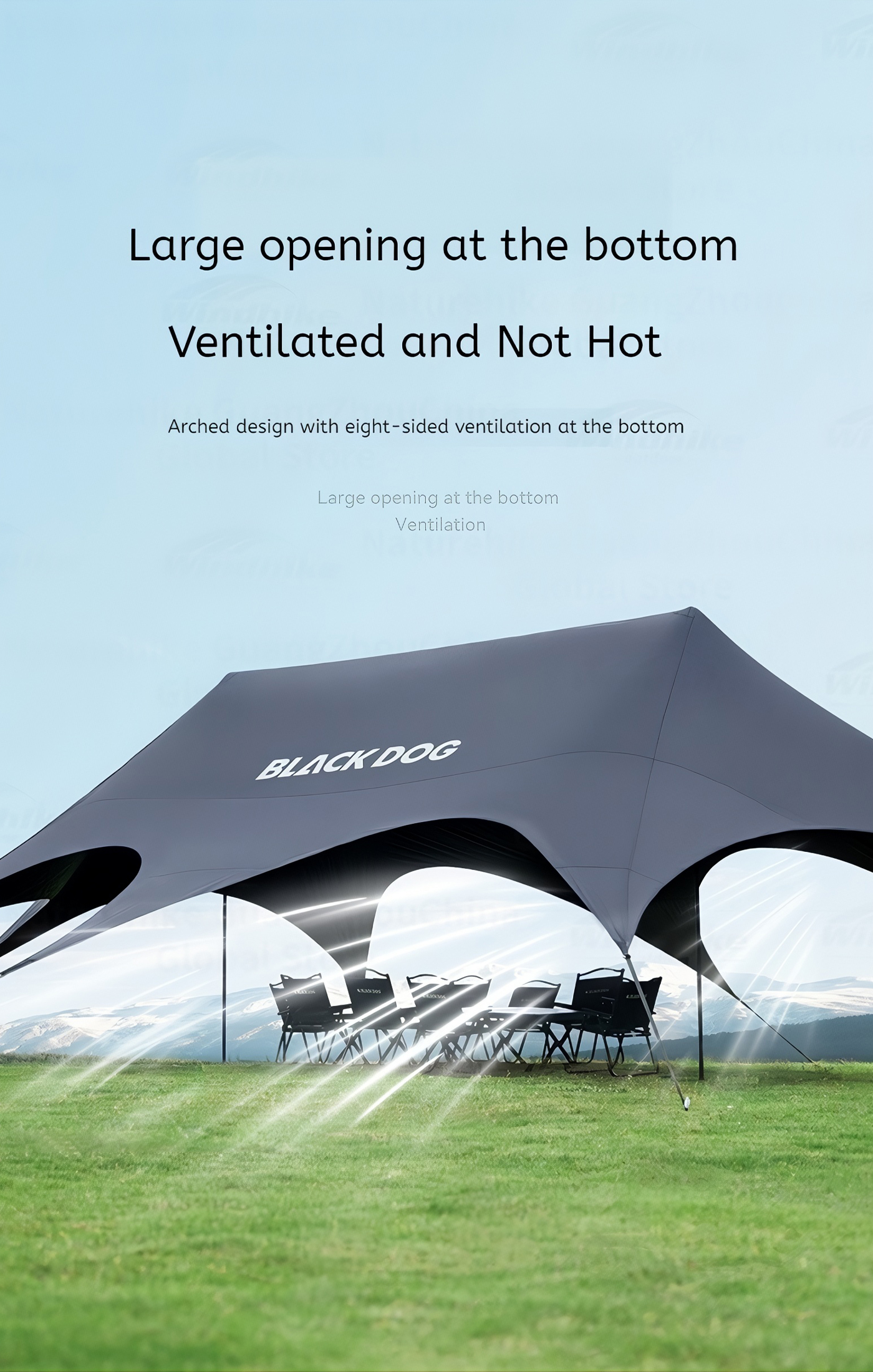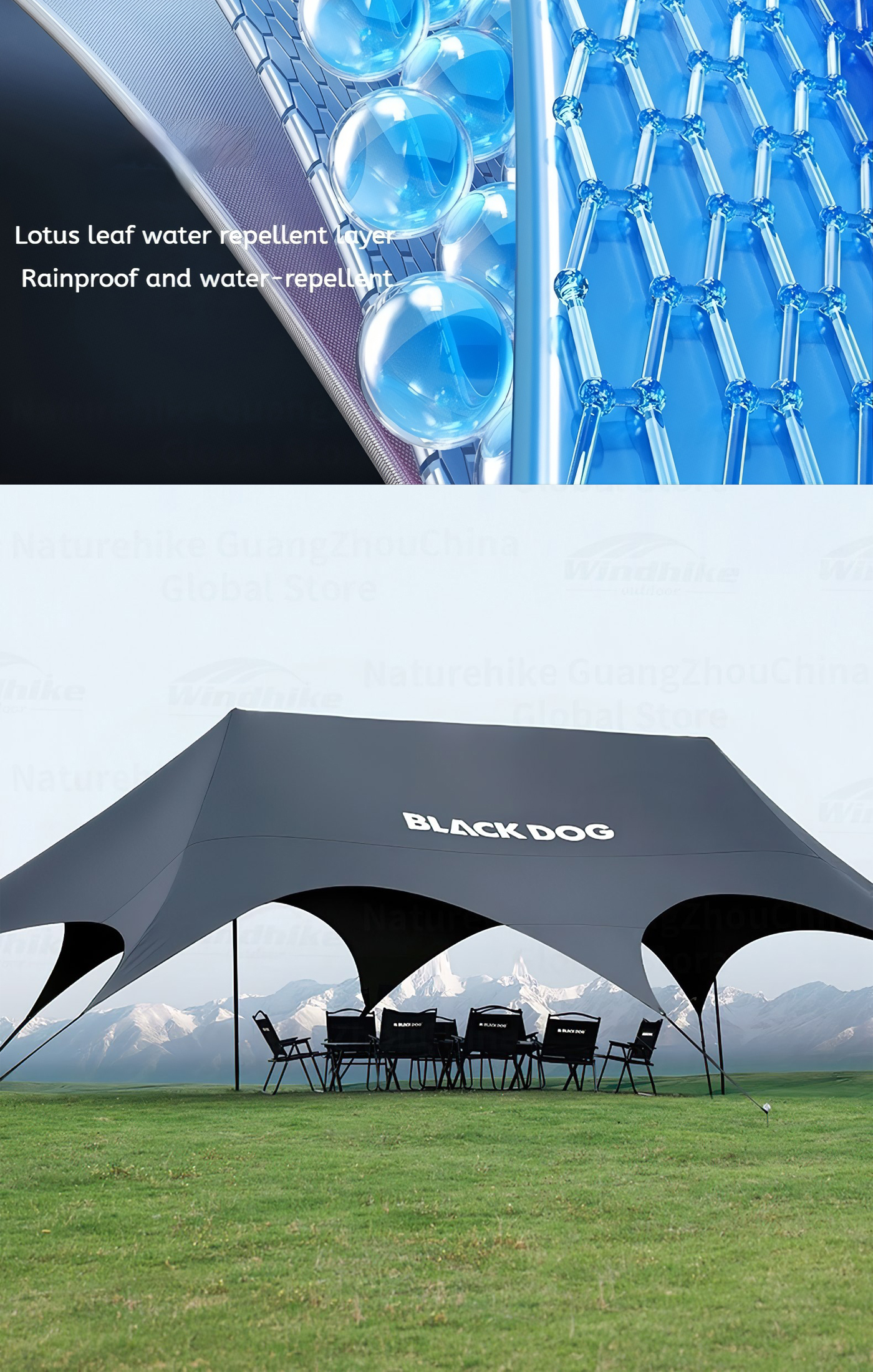 Tấm tăng lều trung tâm BLACKDOG CBD2550WS027 có kích thước rộng 8 x 5 m, chiều cao sào chống đạt 2,6 m, mang lại không gian che phủ lớn tương đương một rạp dã ngoại cỡ nhỏ. Kiểu dáng bát giác bo cạnh giúp bề mặt căng đều, kết hợp 8 điểm cố định vững chắc, đảm bảo độ ổn định khi sử dụng. Sản phẩm rất phù hợp cho team building, dã ngoại tập thể, hoạt động công ty hoặc các buổi sinh hoạt ngoài trời của gia đình đông thành viên.