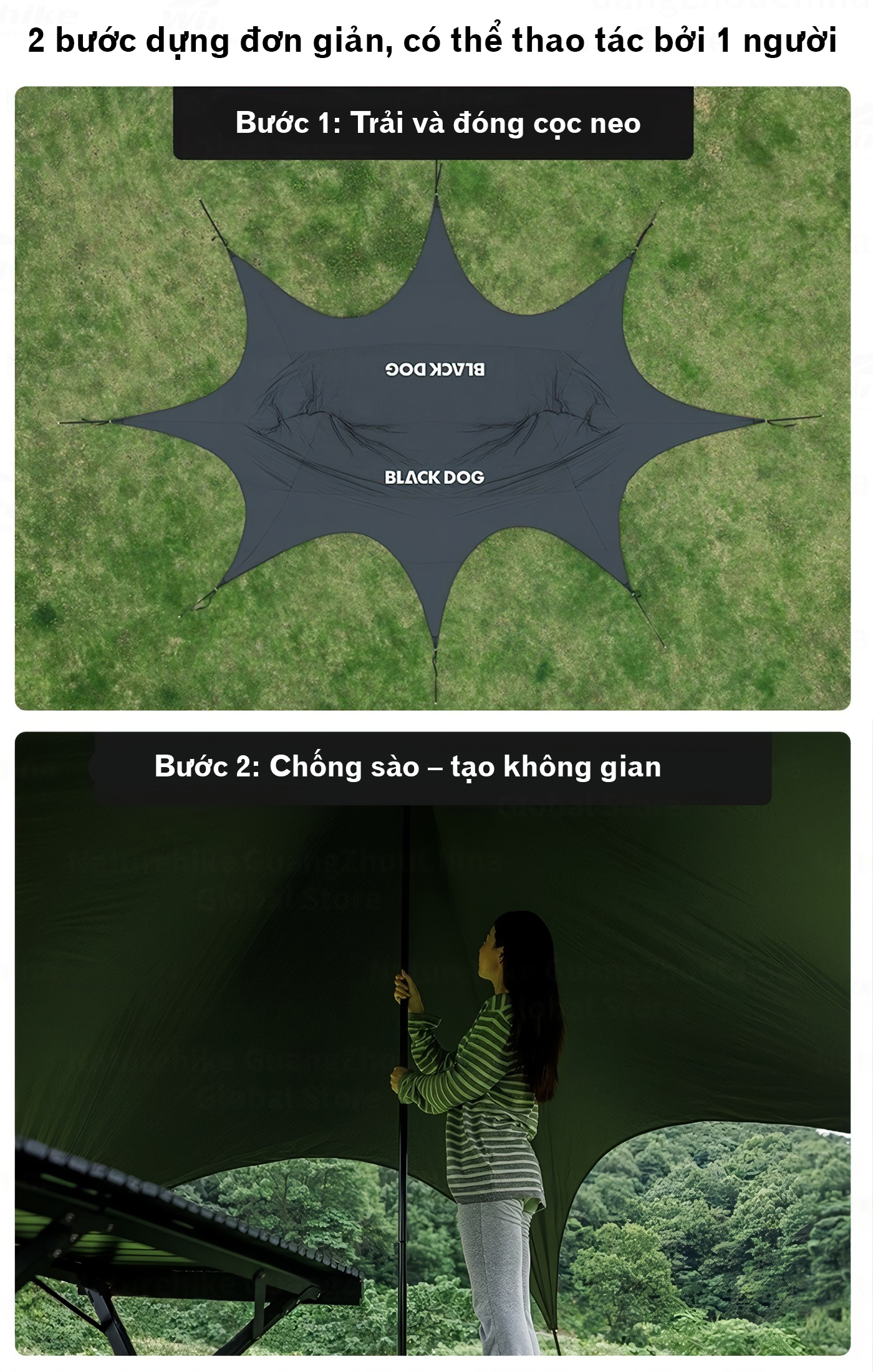 Vải: 150D Oxford (Tráng phủ Black Titanium) Sào: Sắt sơn tĩnh điện |