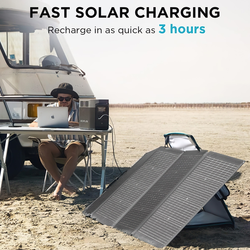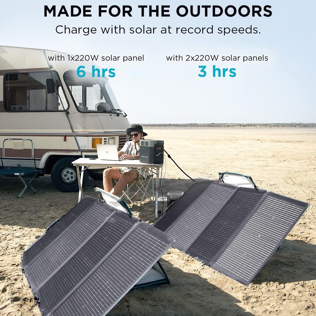 Cắm các tấm pin mặt trời di động và nhận đầu vào lên tới 500W để sạc từ mọi nơi trong vòng 3 giờ. Chọn từ một loạt các tấm pin mặt trời để có được tốc độ bạn cần (110W, 160W, 220W, 400W). Cùng với đó, bạn có quyền sử dụng năng lượng miễn phí ở bất cứ đâu.