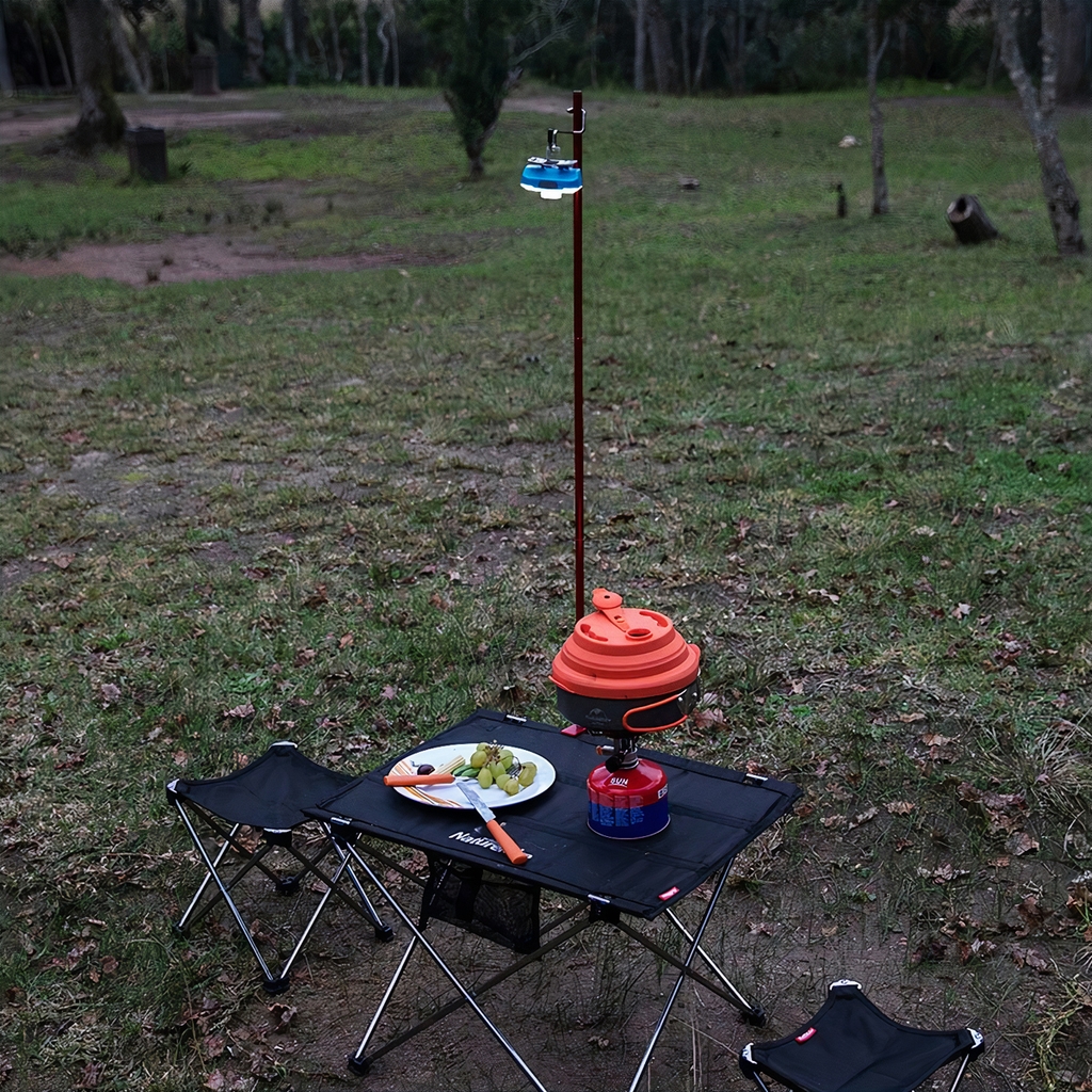 Đó là cách chúng tôi muốn nói về chiếc chân kẹp vào bàn của giá treo đèn Naturehike NH19PJ003 siêu nhẹ. Một bộ giá được thiết kế gắn kẹp vào những chiếc bàn cắm trại. Bàn ăn cỡ lớn khi chúng ta đi cắm trại, đi Glamping ngoài trời.