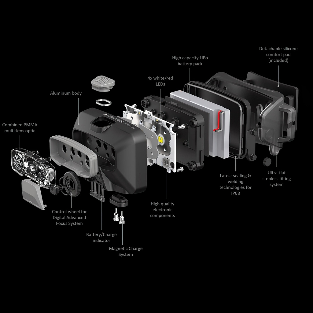 LEDLENSERS HF6R Core là đèn đội đầu có thiết kế mỏng nhẹ, thường ứng dung trong những chuyến đi bộ đường dài và hơn thế là những dự án DIY. Sản phẩm được làm từ vỏ nhôm chất lượng cao cũng như ba mức độ sáng và trang bị chế độ ánh sáng đỏ. Nhờ Digital Advanced Focus System (LEDLENSERS đang chờ cấp bằng sáng chế), HF6R Core cho phép người dùng soi được ở khoảng rộng. Ngoài ra, công nghệ AFS còn được sử dụng một cách trực quan thông qua Focus Wheel, trong khi đầu đèn nghiêng mọi góc độ, hỗ trợ chiếu sáng linh hoạt. Đồng thời, bạn có thể dễ dàng sạc pin tích hợp thông qua Hệ thống sạc từ tính. Sản phẩm còn có một số tính năng khác bao gồm: khóa vận chuyển tiện dụng, chỉ báo trạng thái pin.
