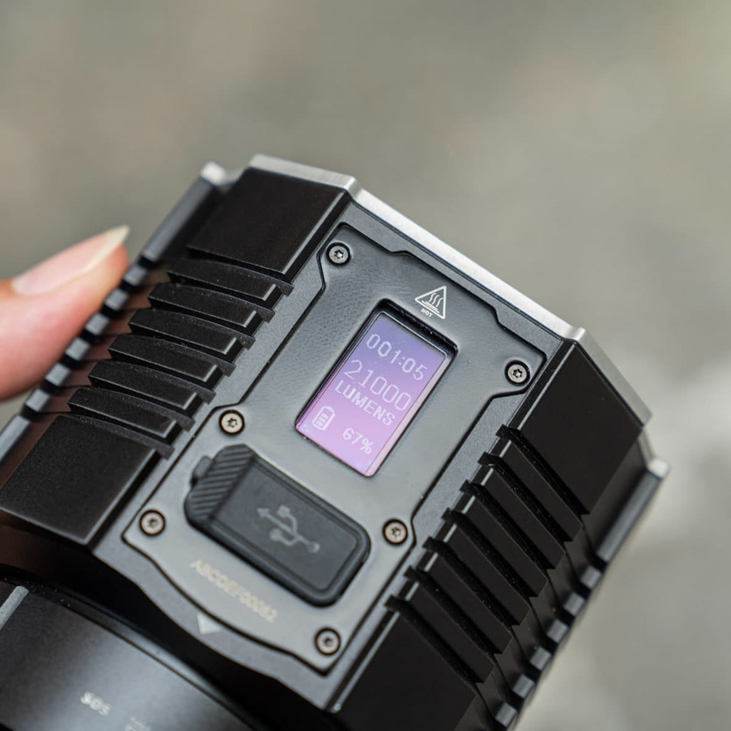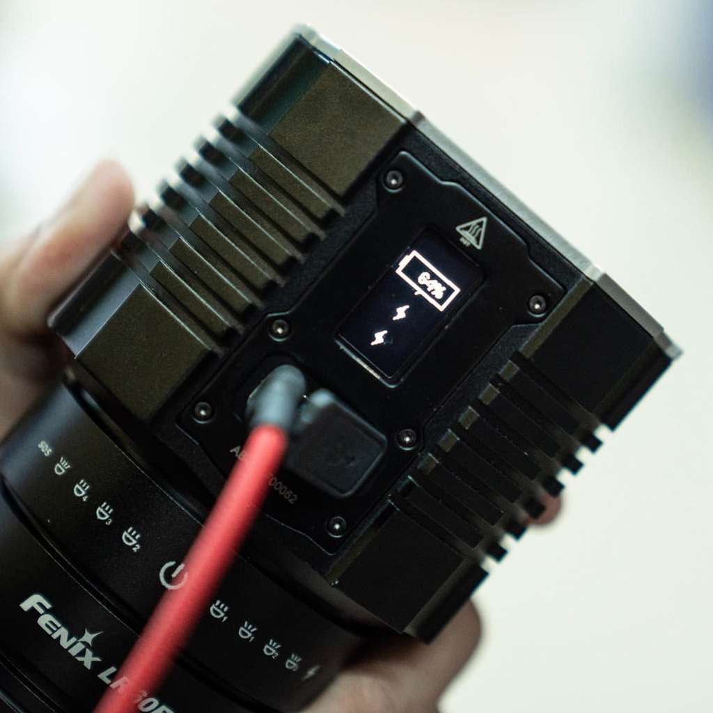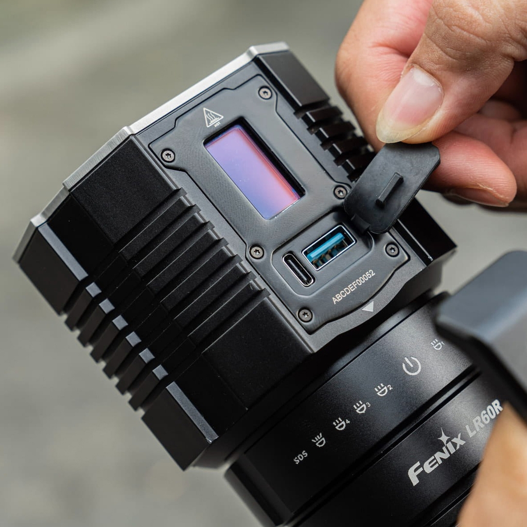Lần đầu tiên, LR60R cũng là mẫu đèn duy nhất của Fenix sở hữu màn hình OLED, đây là một “Option” thiết thực trong quá trình sử dụng. Nó hiển thị rõ các thông số về: Công suất, thời gian sáng và mức pin còn lại. Khi sạc đèn, màn hình OLED cũng hiện rõ từng phần trăm để chúng ta nắm được thông tin.