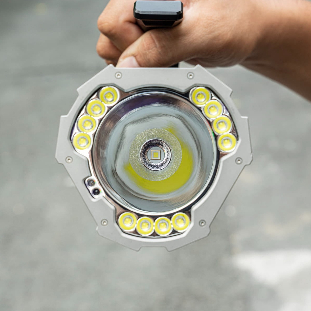 Khi bề mặt ánh sáng ở gần đối tượng chiếu sáng (khoảng 60mm) trong hơn 1 giây, đèn pin sẽ tự động giảm mức sáng bằng mức Eco của chế độ chiếu Xa để tránh nguy hiểm do nhiệt độ cao gây ra.