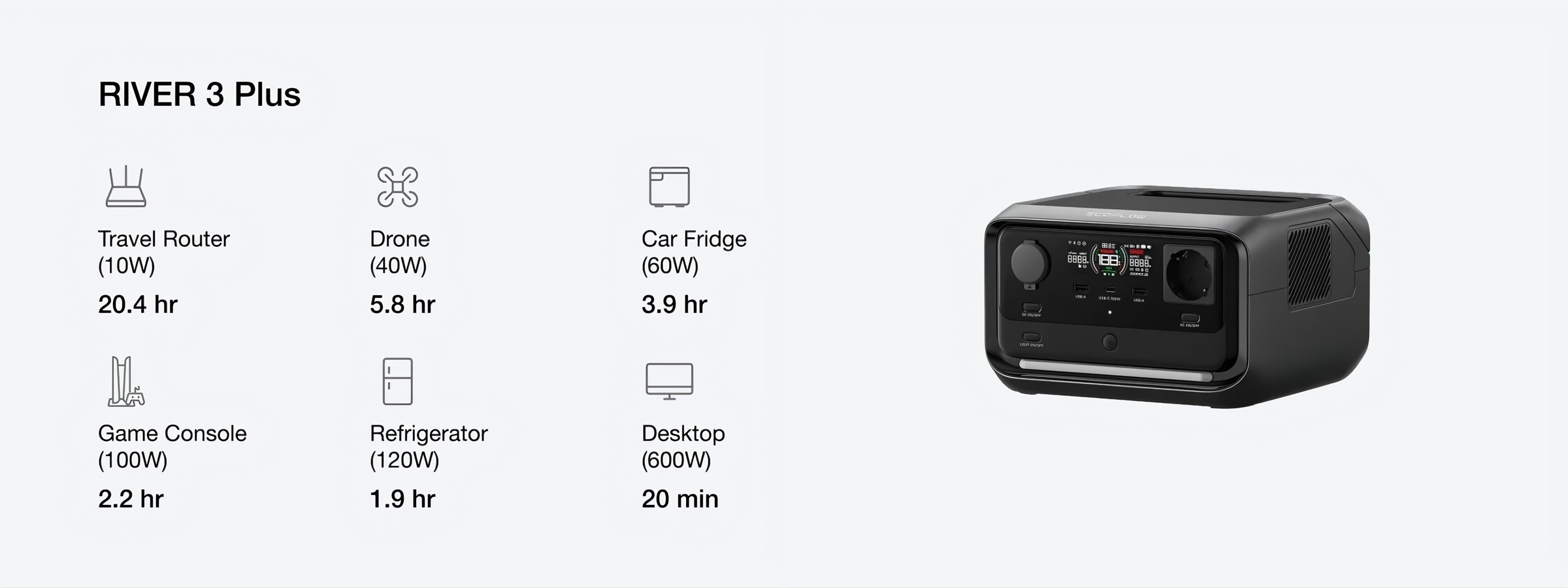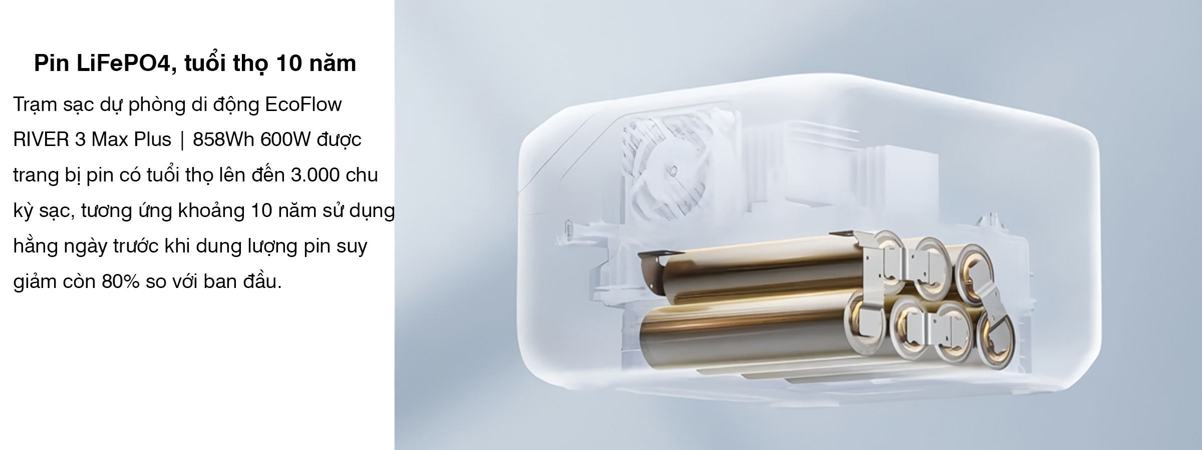 Dung tích: RIVER 3 Plus: 286Wh RIVER 3 Max: 572Wh RIVER 3 Max Plus: 858Wh |