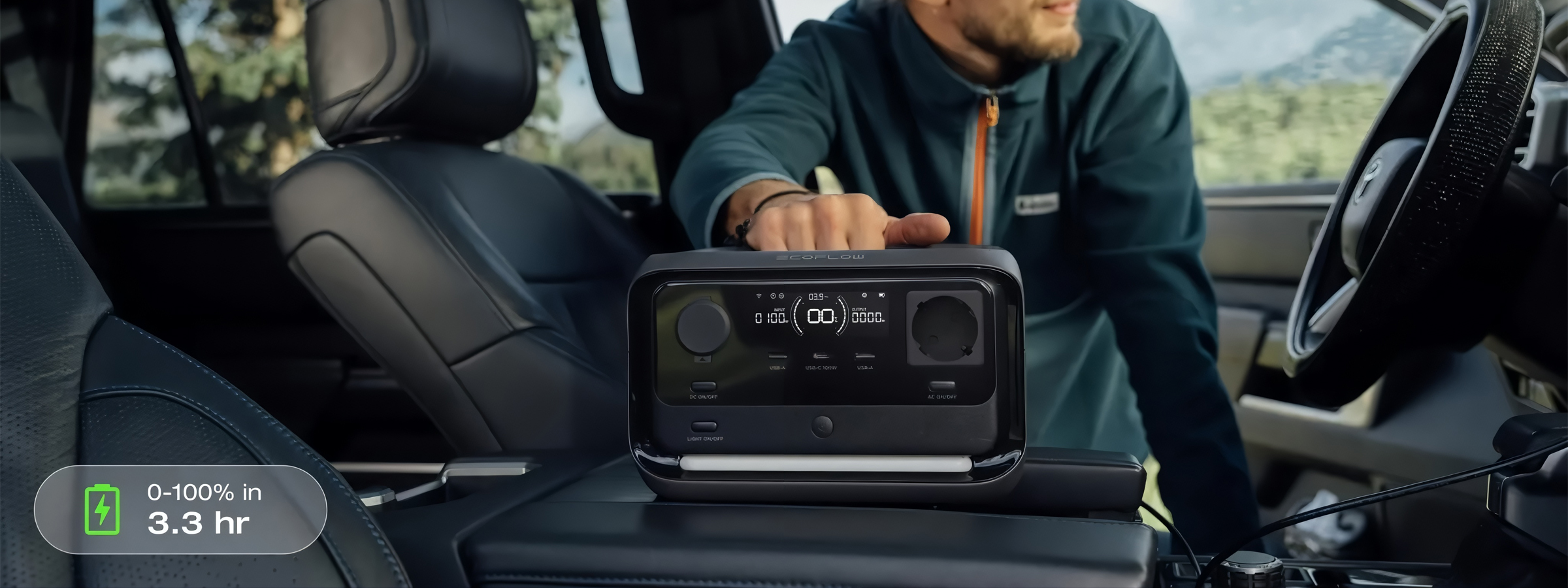 Sạc trên ô tô từ 0–100% trong 3,3 giờ: RIVER 3 Plus có thể được nạp pin trực tiếp từ ắc quy xe hơi trong suốt quá trình di chuyển, mang đến giải pháp cấp điện tiện lợi và phù hợp cho những chuyến đi dài