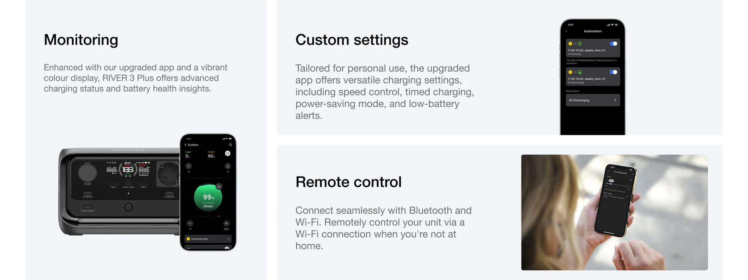 Dung lượng pin bổ sung của RIVER 3 Plus: EB300: 286Wh – mở rộng lên 572Wh EB600: 572Wh – mở rộng lên 858Wh Hỗ trợ RIVER 3 Plus |