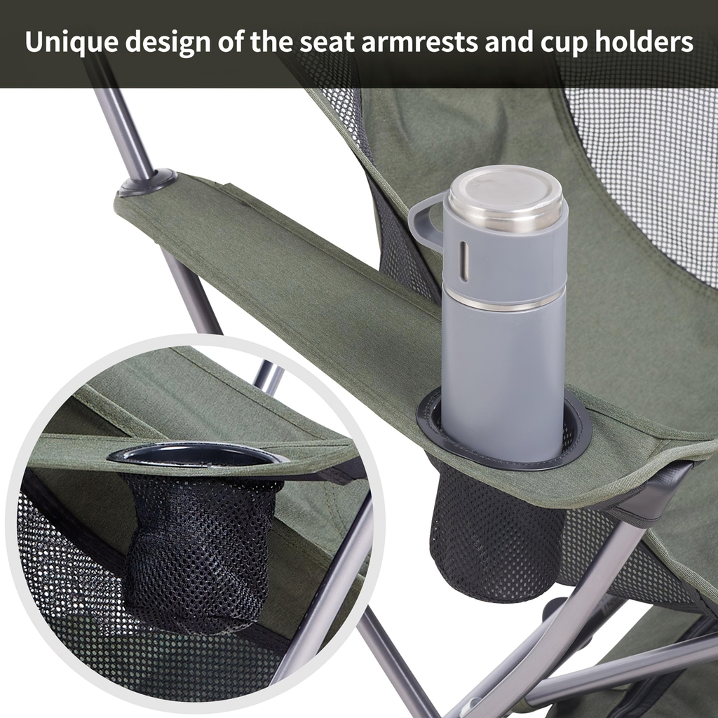 Về chất liệu: không mấy xa lạ với vải Oxford 600D bền chắc, khung nhôm để tối thiểu trọng lượng. Thiết kế xếp gọn cũng như các trang bị thêm phần tựa tay có hốc để cốc đặc biệt thích hợp cho câu cá, hay những hoạt động dã ngoại,cắm trại ngoài trời.