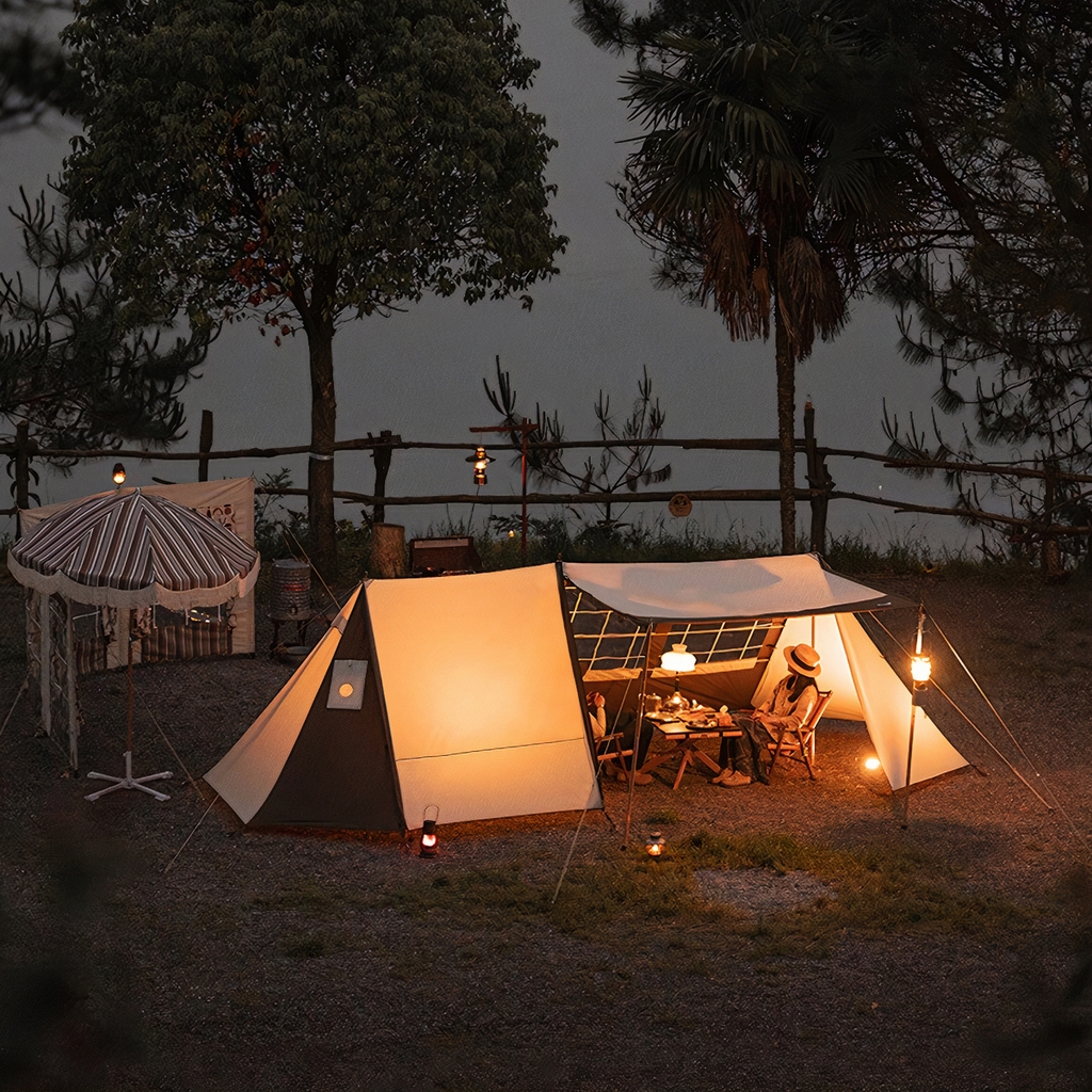 - Có thể kèm thêm một khu vực bàn trà nhỏ, thư giãn ngay trong lều (phù hợp khi gặp mưa lớn