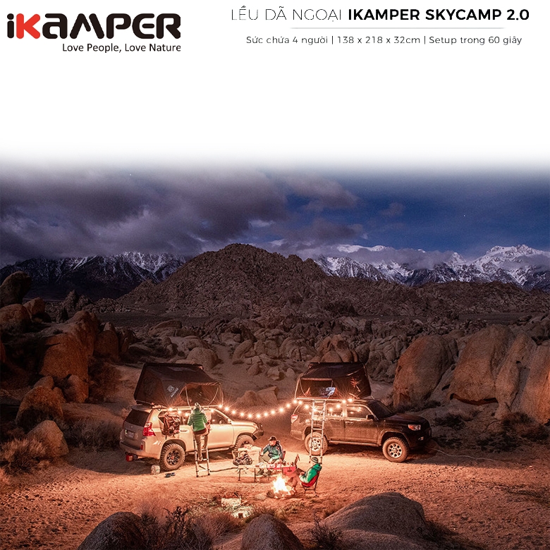 Skycamp iKamper là bộ lều được biết đến với tính cơ động, tháo lắp nhanh chóng trong vòng chưa đầy 1 phút – giúp bạn tiết kiệm rất nhiều thời gian để nghỉ ngơi và thư giãn