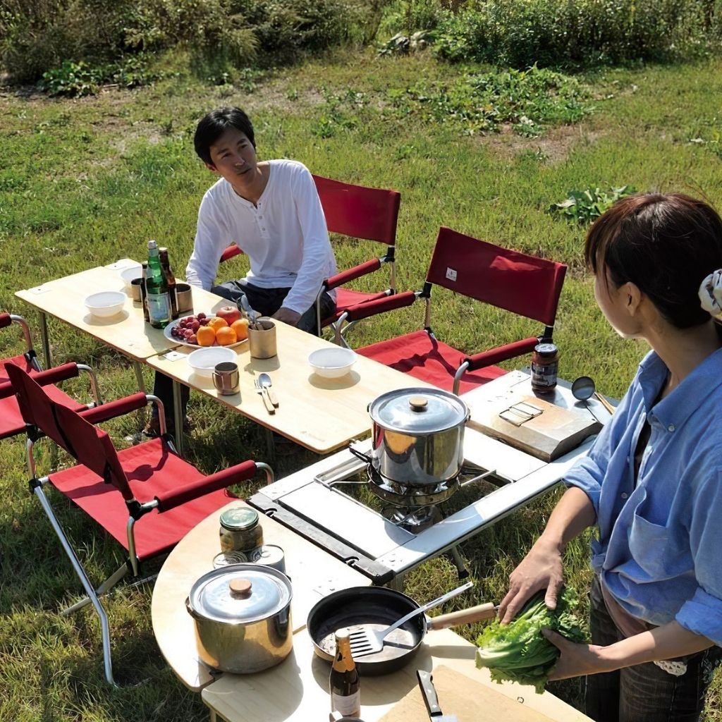 Một trong những điểm đáng chú ý nhất của mặt bàn cắm trại Snowpeak Multi-Function Table là chất liệu gỗ tre tự nhiên. Gỗ tre là một nguồn tài nguyên bền vững và thân thiện với môi trường, mang lại một phong cách thiên nhiên và ấm cúng cho không gian cắm trại. Ngoài ra, gỗ tre cũng có độ bền cao và khả năng chịu lực khá tốt, đảm bảo sự ổn định của mặt bàn.