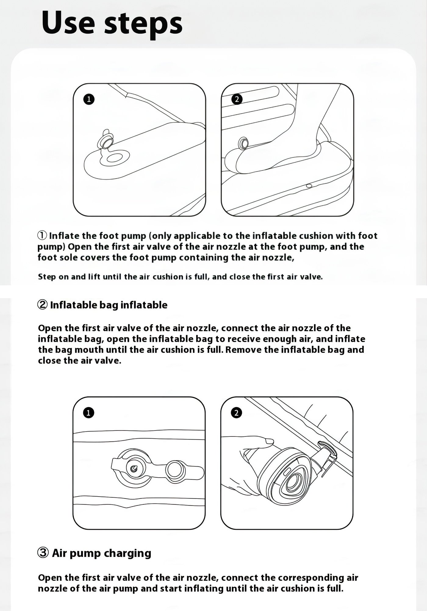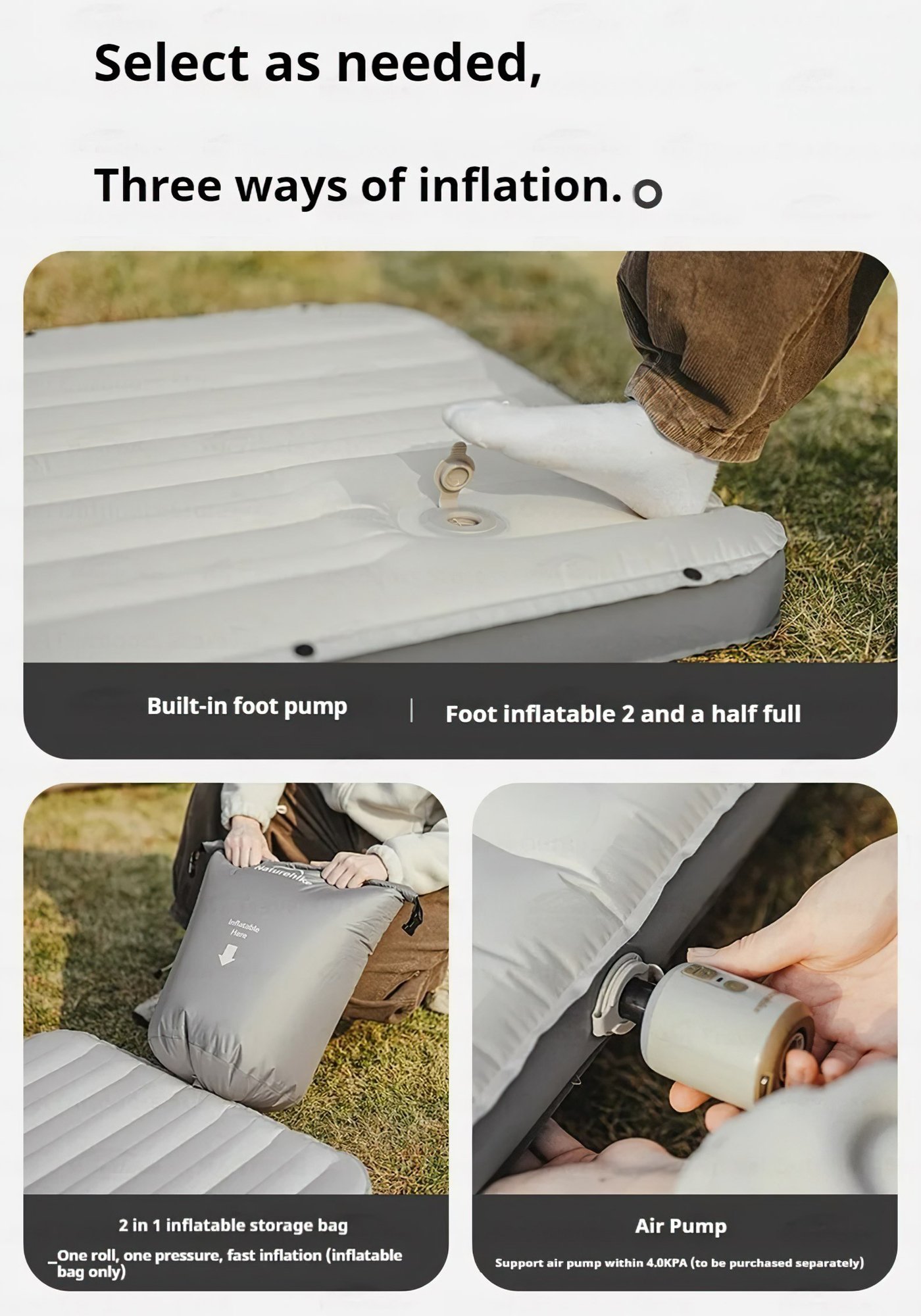 Trang bị van lớn, chỉ mất khoảng 1–2 phút bơm bằng tay, chân hoặc bơm điện. Tiết kiệm tối đa thời gian dựng trại, đặc biệt khi trời tối.