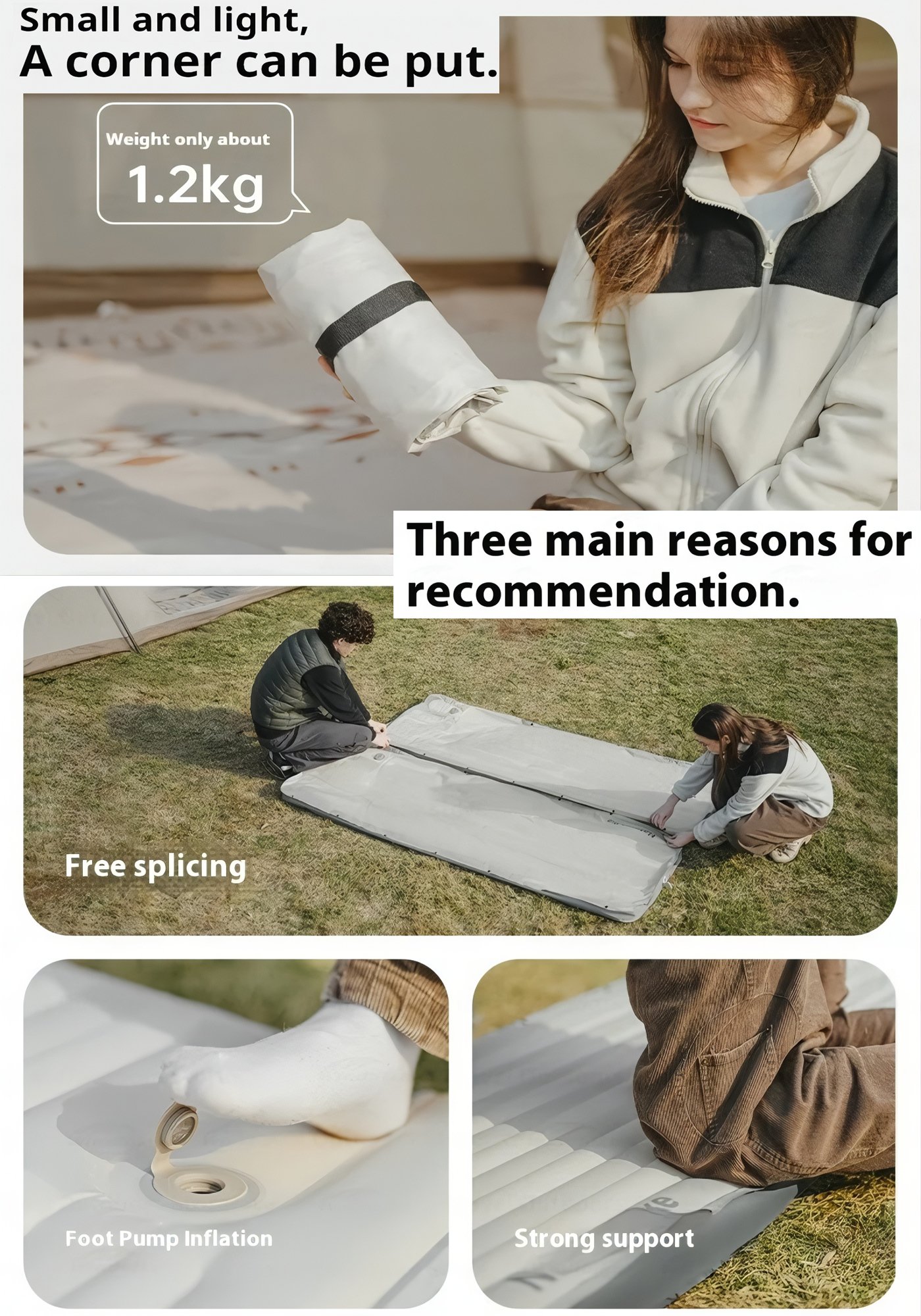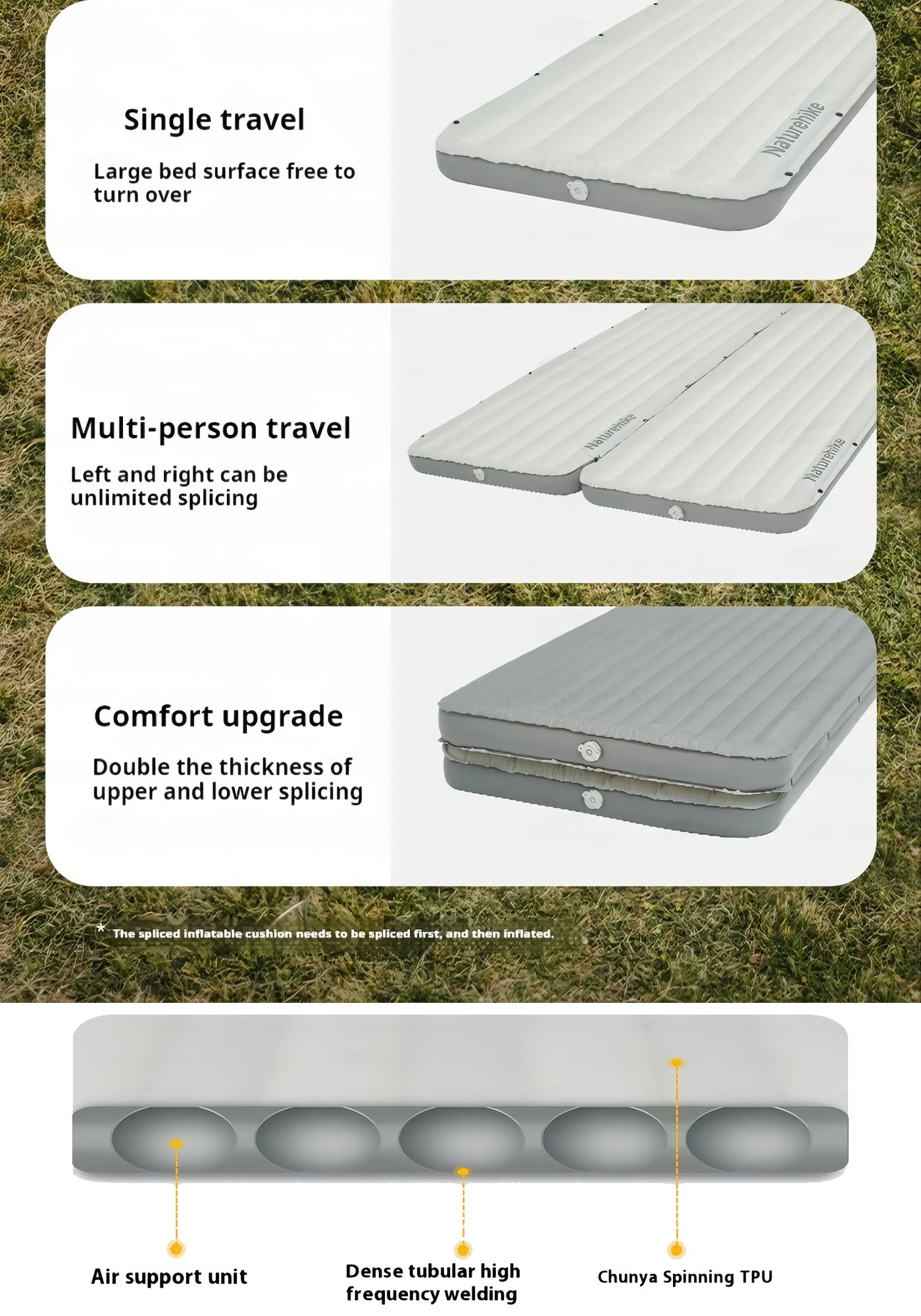 Thiết kế khóa ghép 2 bên cho phép kết nối nhiều tấm nệm, dễ dàng biến thành nệm đôi hoặc nệm nhóm, phù hợp cả đi solo, đi cùng bạn bè hay gia đình.