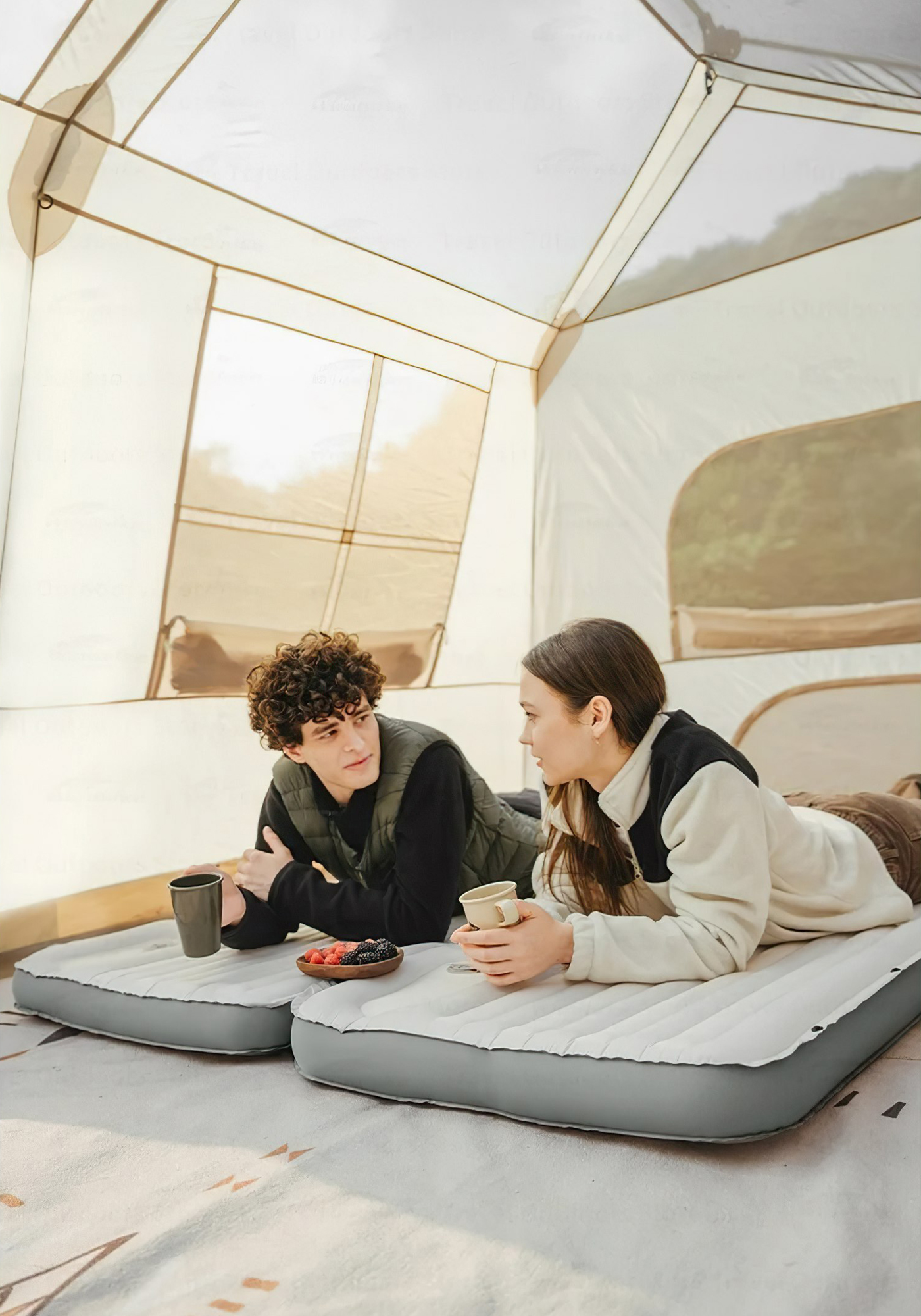 Cấu trúc khí đệm giúp ngăn lạnh, chống ẩm từ nền đất, mang lại sự thoải mái ngay cả khi cắm trại trong điều kiện mưa ẩm hoặc trời se lạnh.