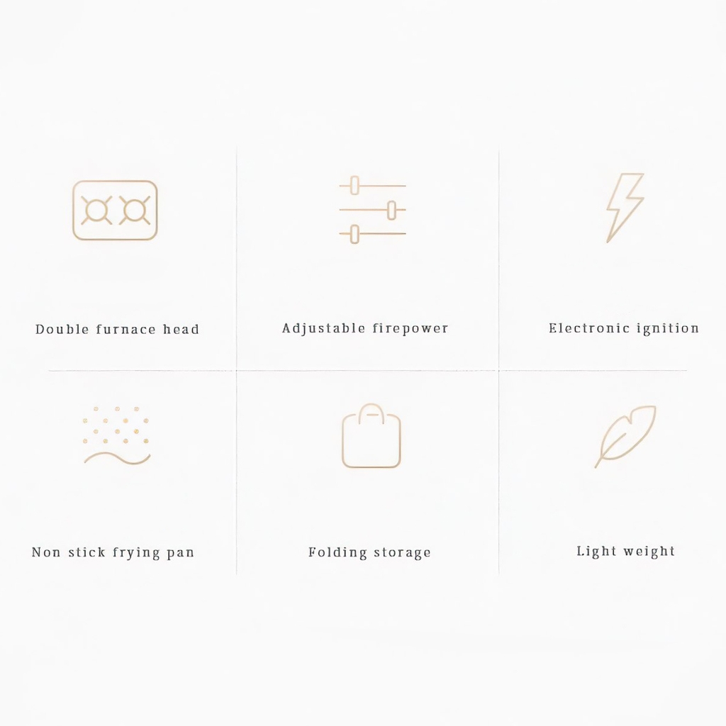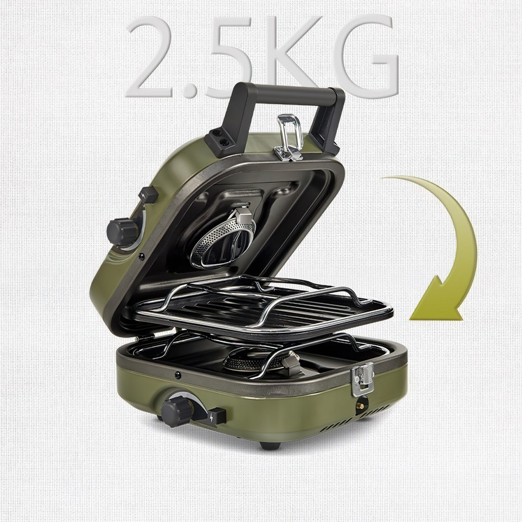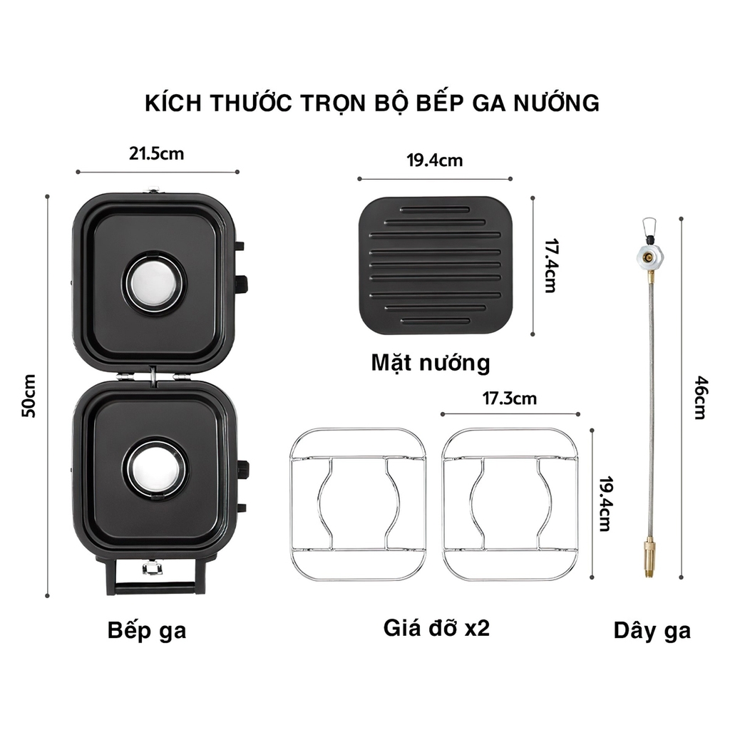 Bếp sở hữu hai mặt nấu giúp việc chế biến thức ăn nhanh chóng và thuận tiện hơn, tiết kiệm đáng kể thời gian đun nấu. Đồng thời, thiết kế này cũng giúp tối ưu lượng nhiên liệu tiêu thụ trong suốt quá trình sử dụng, mang lại hiệu quả cao cho các hoạt động nấu nướng ngoài trời.