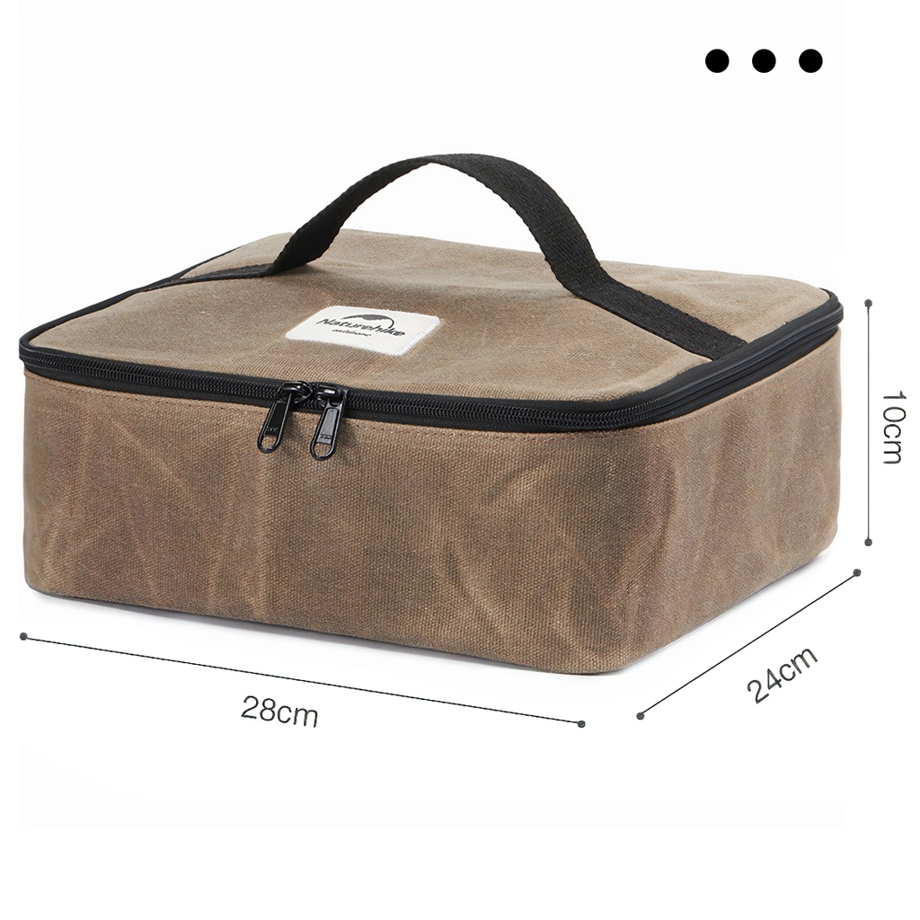 Naturehike hướng dẫn chúng ta sử dụng túi đồ Canvas cho khoảng 04 bình gas mini. Kèm một khoảng không gian nhỏ, cho chiếc bếp gas mini gấp gọn mang theo. Hệ thống đèn pin, đều lều chiếu sáng cho không gian lều trại. Cũng được sắp xếp gọn gàng trong chiếc túi hộp này.