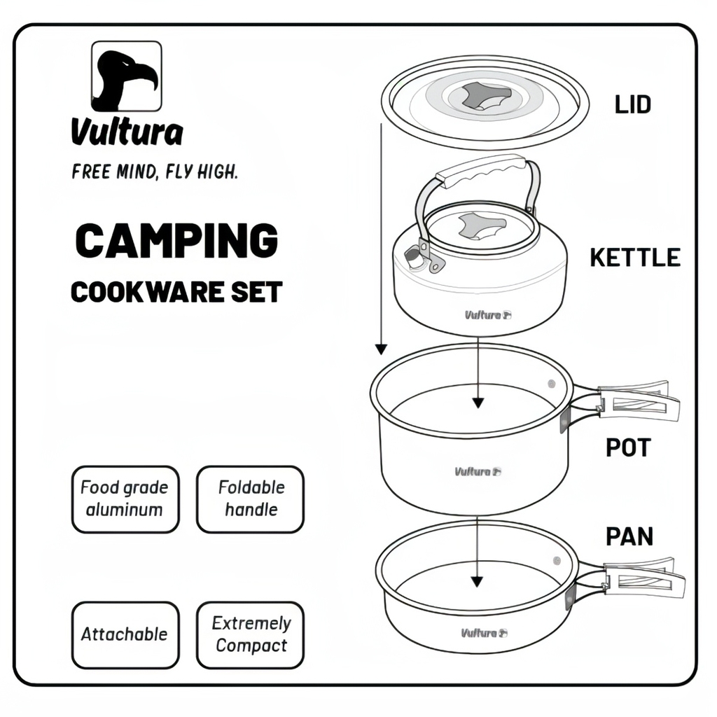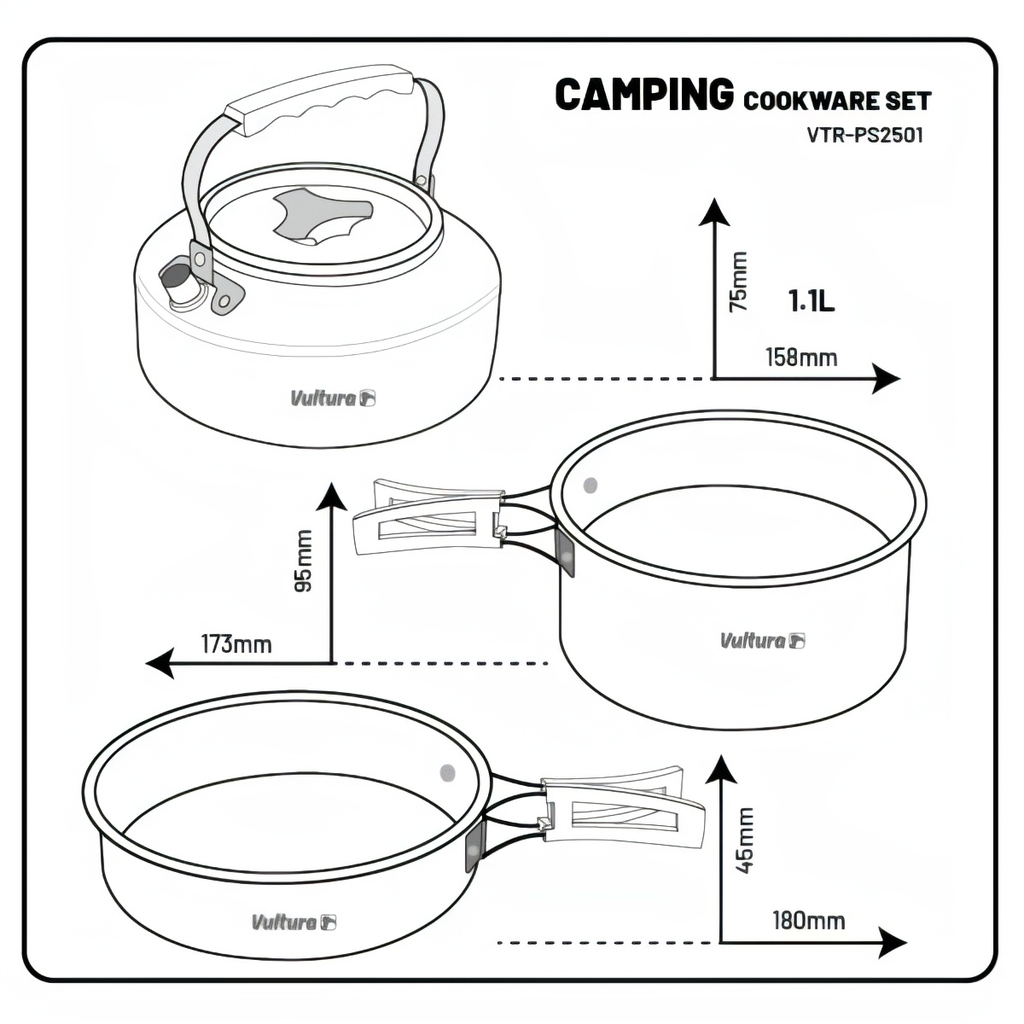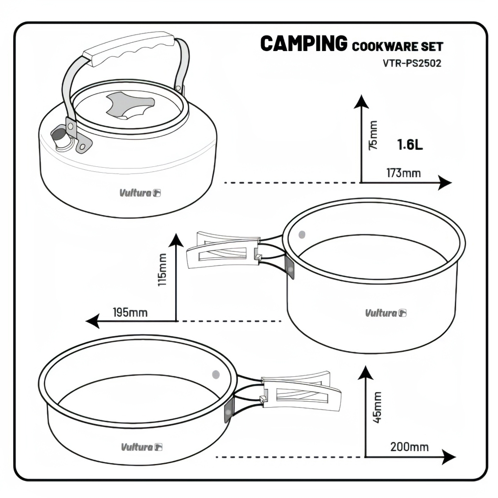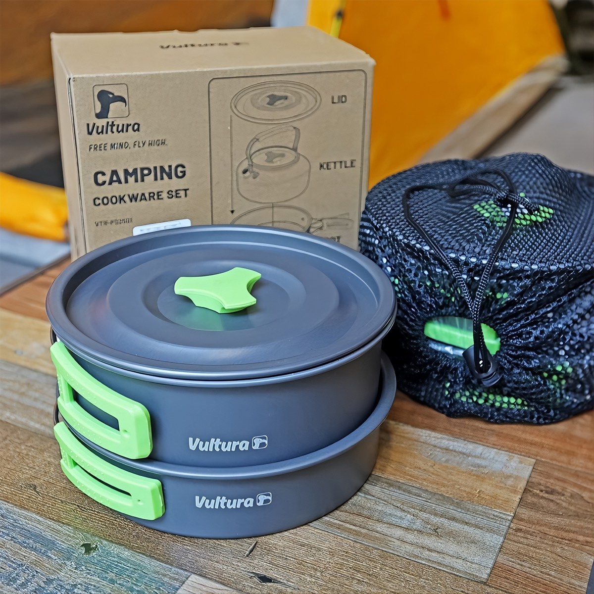 Bộ nồi – chảo – ấm dã ngoại Vultura là lựa chọn hoàn hảo cho những chuyến trekking, cắm trại hoặc dã ngoại từ 1–3 người.