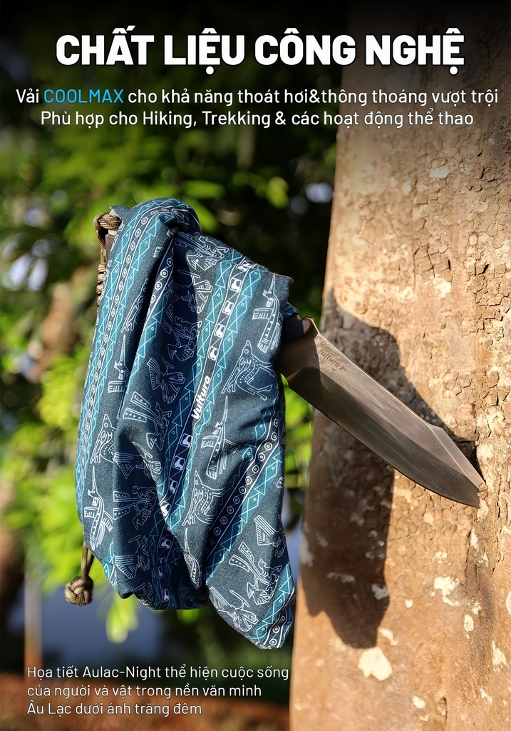 Khăn BN2501 của Vultura thuộc phân khúc cao cấp, được làm từ chất liệu vải Coolmax ứng dụng công nghệ hiện đại, mang lại cảm giác thoáng mát và khả năng thoát ẩm vượt trội. Điểm nhấn đặc biệt là họa tiết Âu Lạc mang đậm bản sắc Việt do chính đội ngũ thiết kế Vultura sáng tạo, giúp sản phẩm không chỉ mang tính ứng dụng cao mà còn trở thành một biểu tượng văn hóa khi đồng hành cùng người dùng trong mọi hành trình.