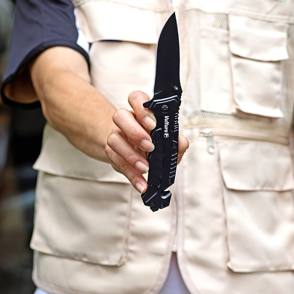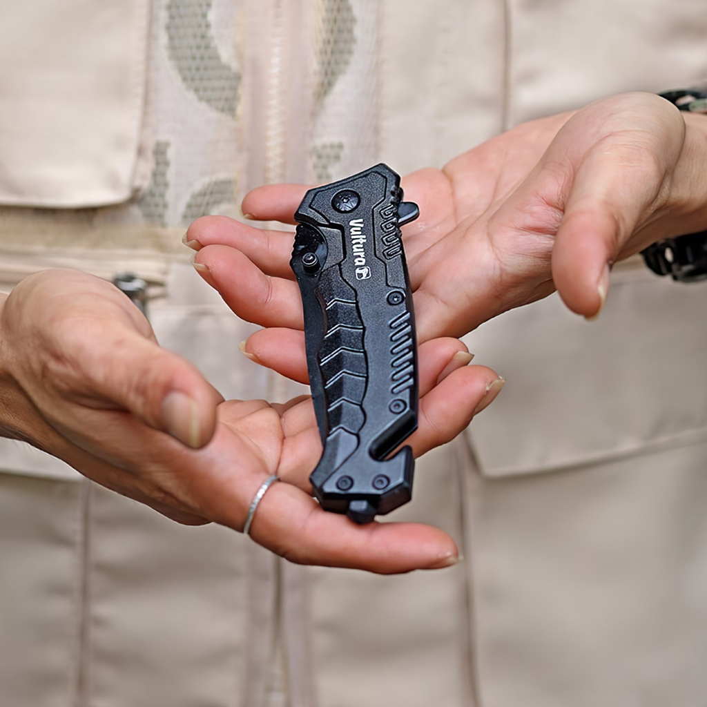 Dao xếp cứu hộ Vultura VTR-KN2402 là món đồ không thể thiếu trong xe hơi, đặc biệt hữu ích khi di chuyển bằng ô tô. Thiết kế chuyên dụng phục vụ tình huống khẩn cấp, dao được tích hợp đầu phá kính ở chuôi – giúp bạn thoát ra ngoài khi cửa xe bị kẹt – và lưỡi cắt dây an toàn dạng V-cut, hỗ trợ cắt seatbelt nhanh chóng nếu cơ chế mở bị hỏng.