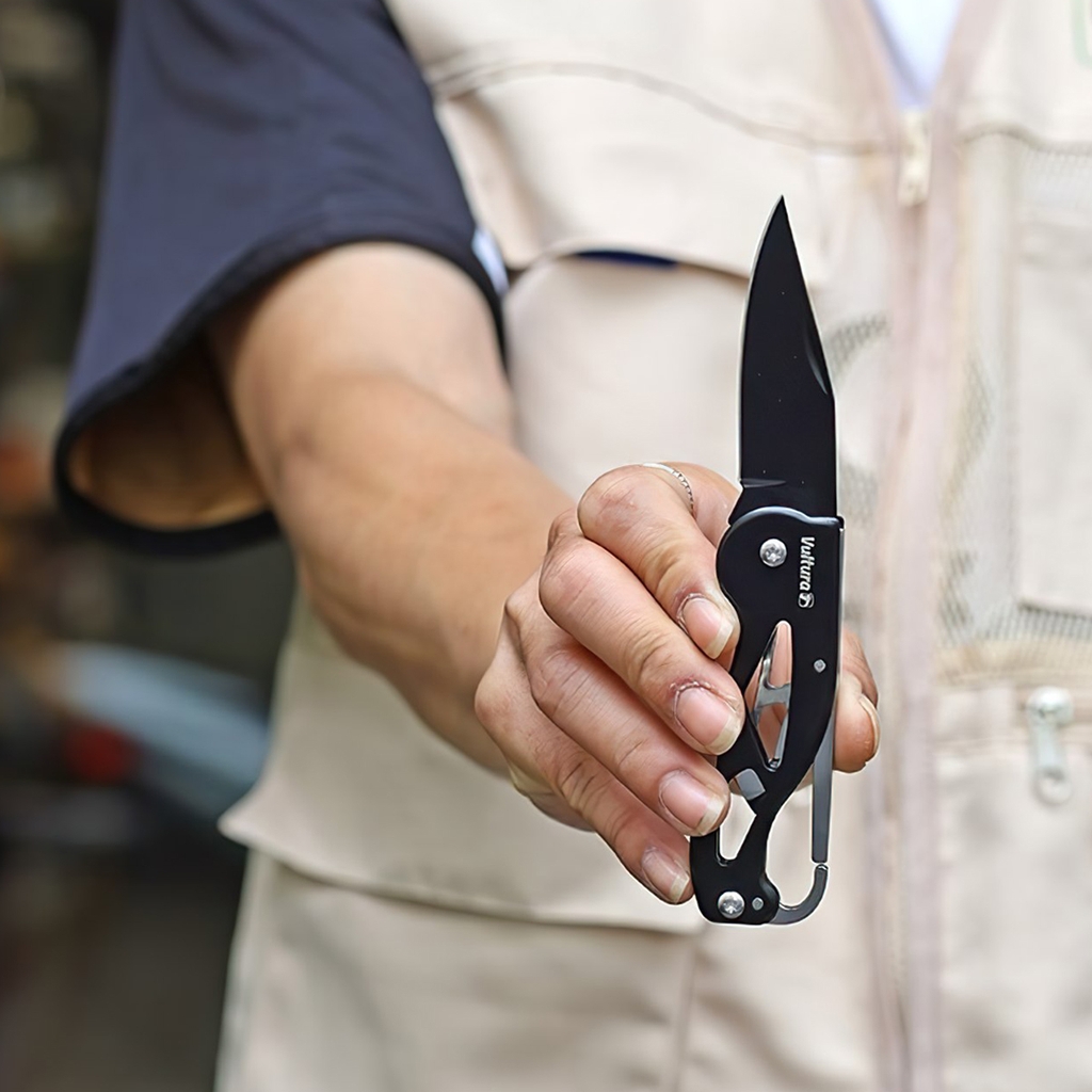 Dao xếp Vultura VTR-KN2403 là lựa chọn lý tưởng cho những ai cần một công cụ nhỏ gọn, nhẹ và tiện dụng trong các hoạt động ngoài trời hoặc sử dụng hàng ngày. Thiết kế thông minh với móc carabiner tích hợp ở chuôi dao cùng kẹp gài chắc chắn, giúp bạn dễ dàng treo lên ba lô, túi áo hay dây đeo – thuận tiện khi di chuyển và thao tác nhanh chóng.